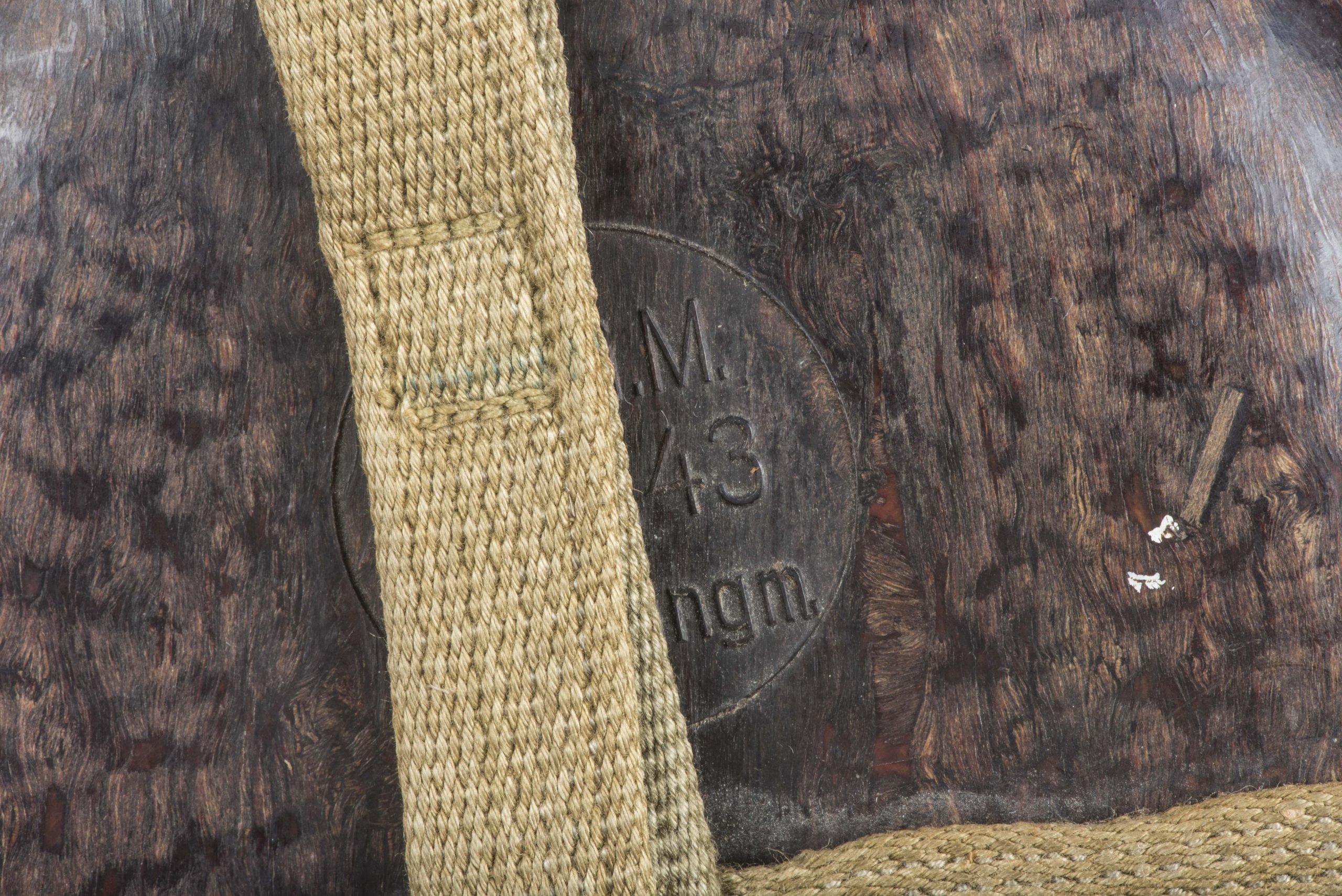 Textbook late war coconut canteen in excellent, unissued condition. This example is nicely marked HRE 43 which indicates production byHeinrich Ritter, Esslingen. This canteen comes with a typical small aluminium cup which is unpainted and unmarked but textbook for this canteen! Perfect example which would be impossible to upgrade!For more information on these canteens look at my article here;https://fjm44.com/articles/the-coconut-canteen-ritters-mystery-canteen/