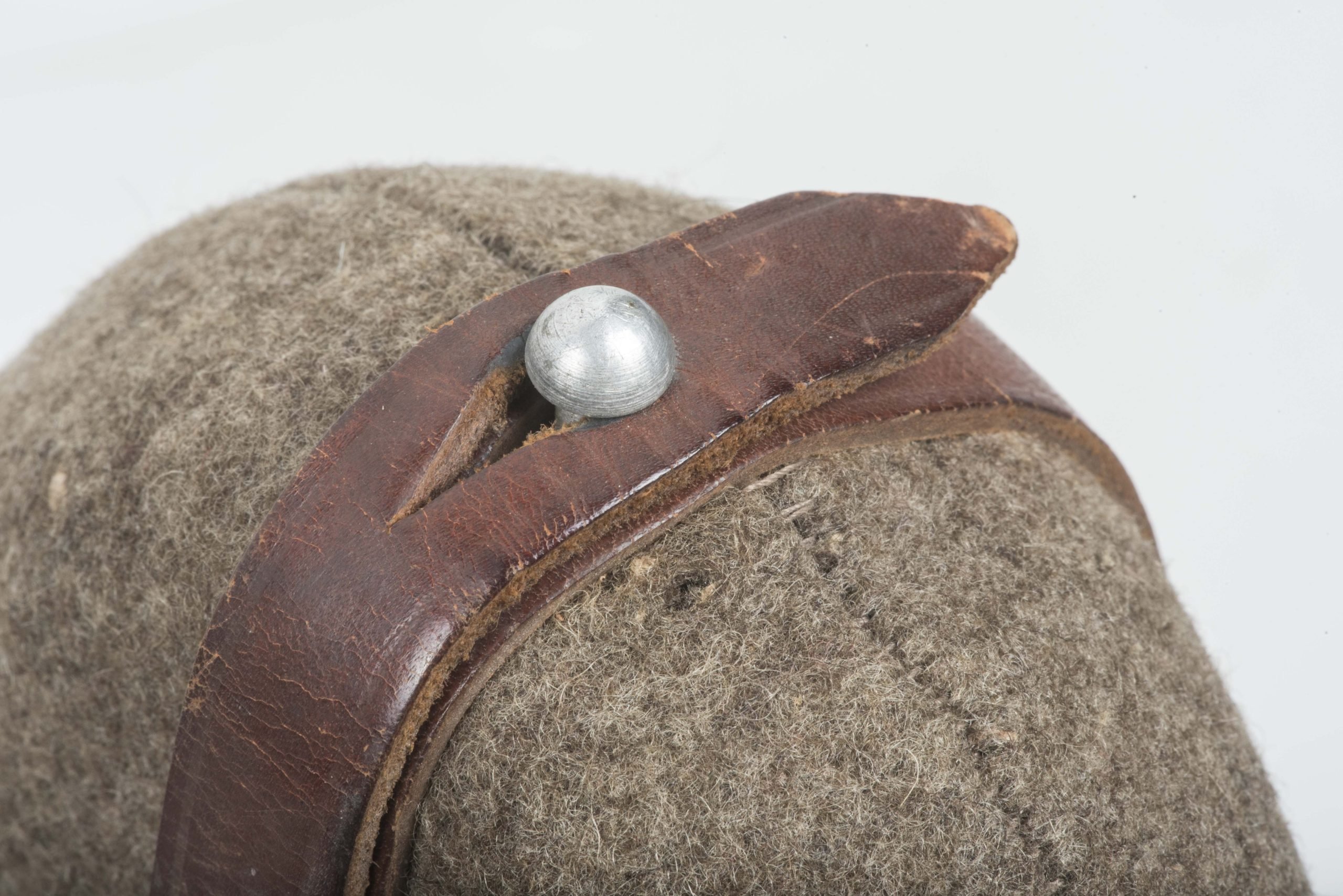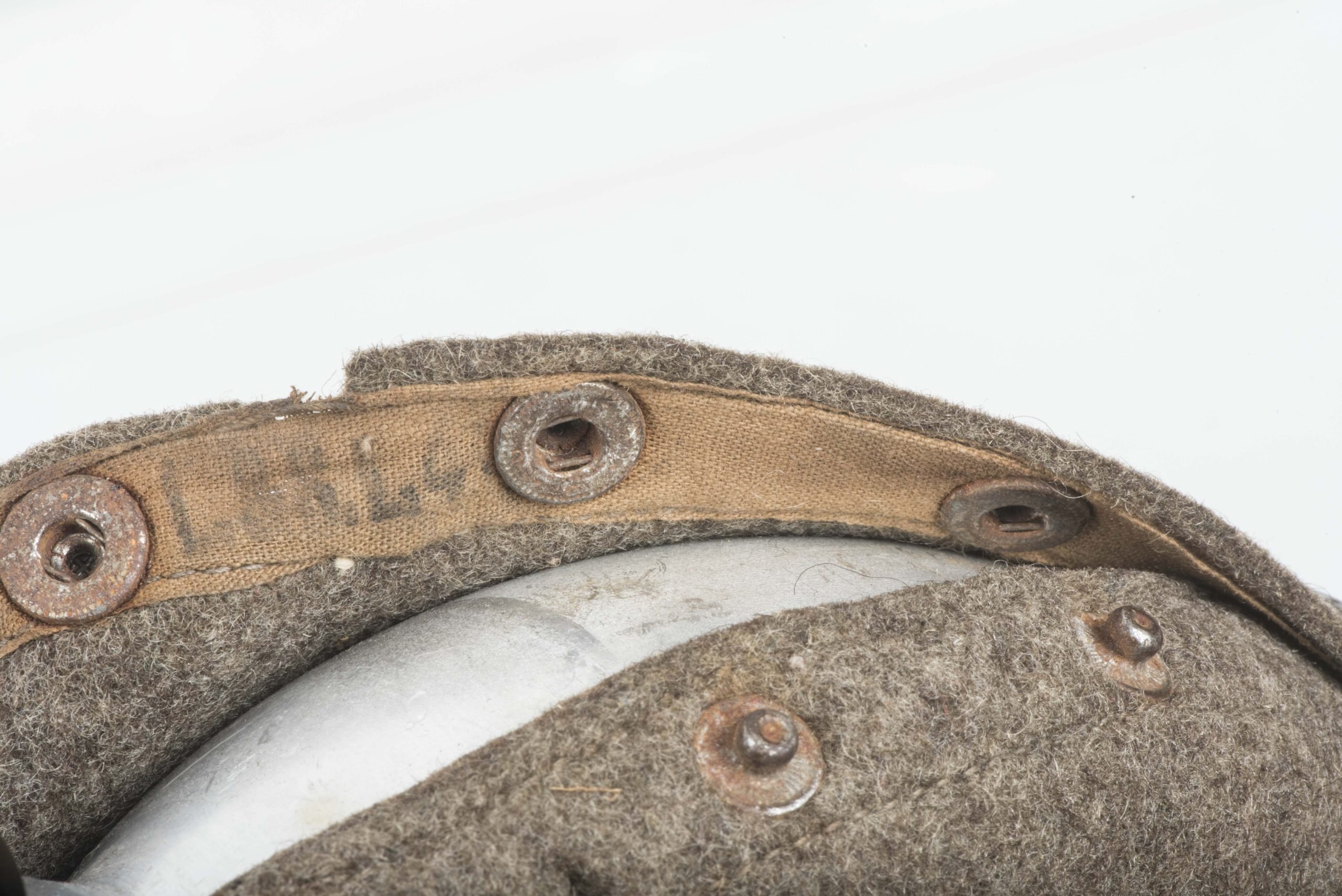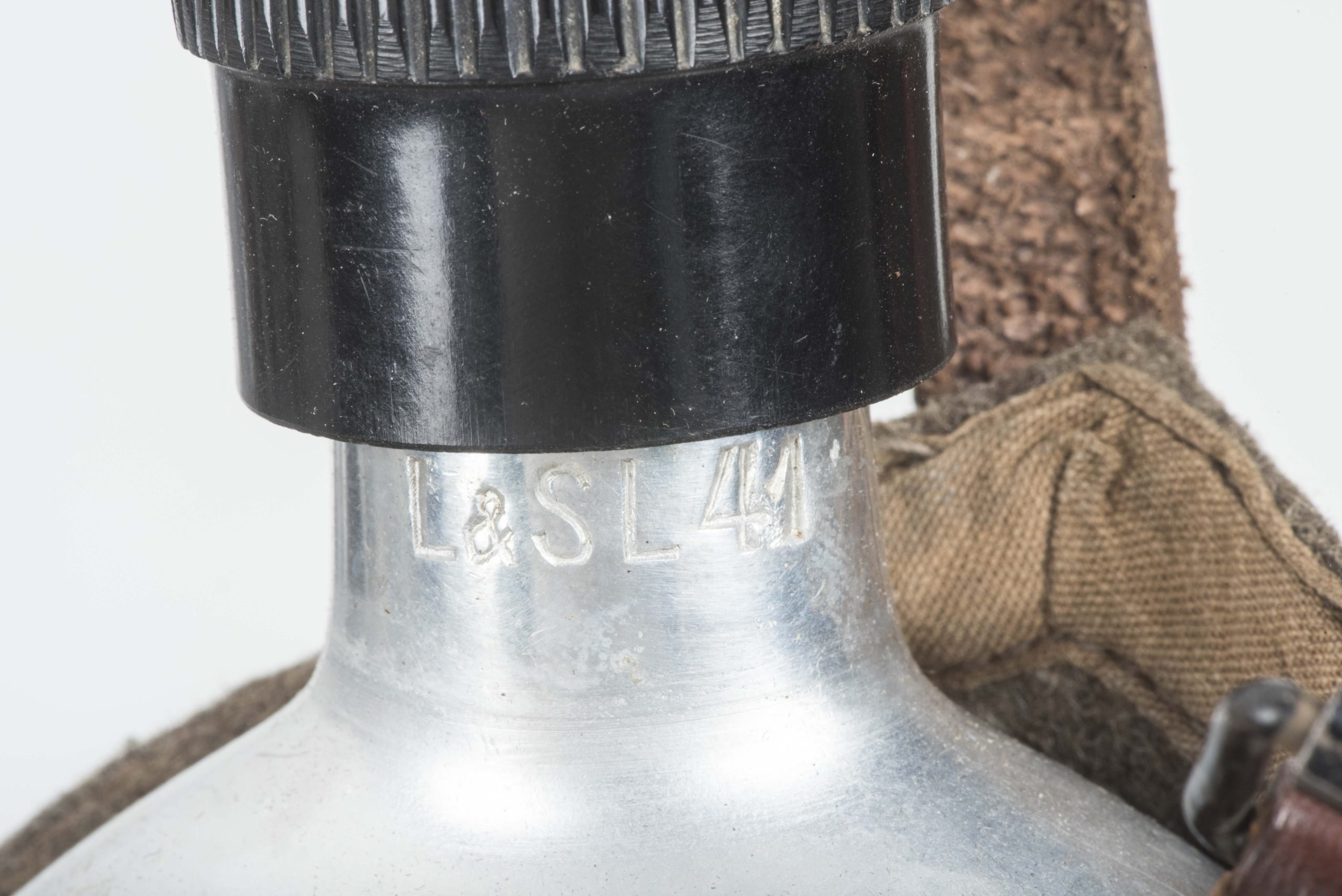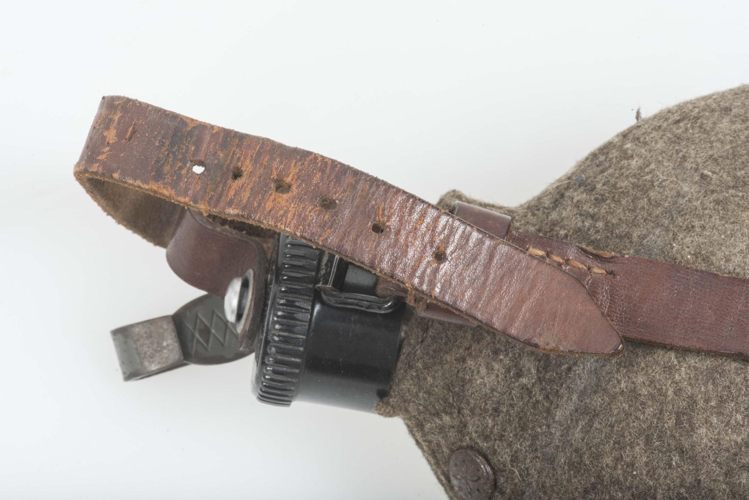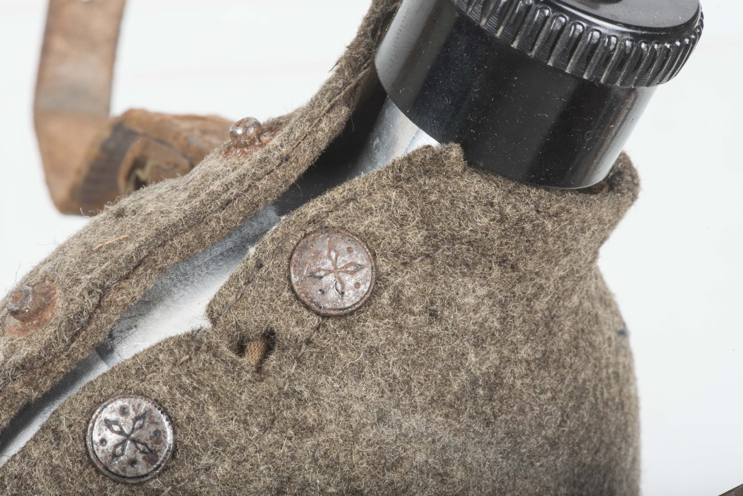 Textbook early war manufactured M31 canteen in very good condition. This canteen features light brown straps which is rather unusual for these early canteens. All parts are nicely marked L&SL 41 which indicates production byLinnepe & Schiffer Metallwarenfabrik, LΓΌdenscheid.Sadly the leather strap which is attached to the screw cap is broken. Very nice and textbook M31 canteen which would be hard to upgrade!