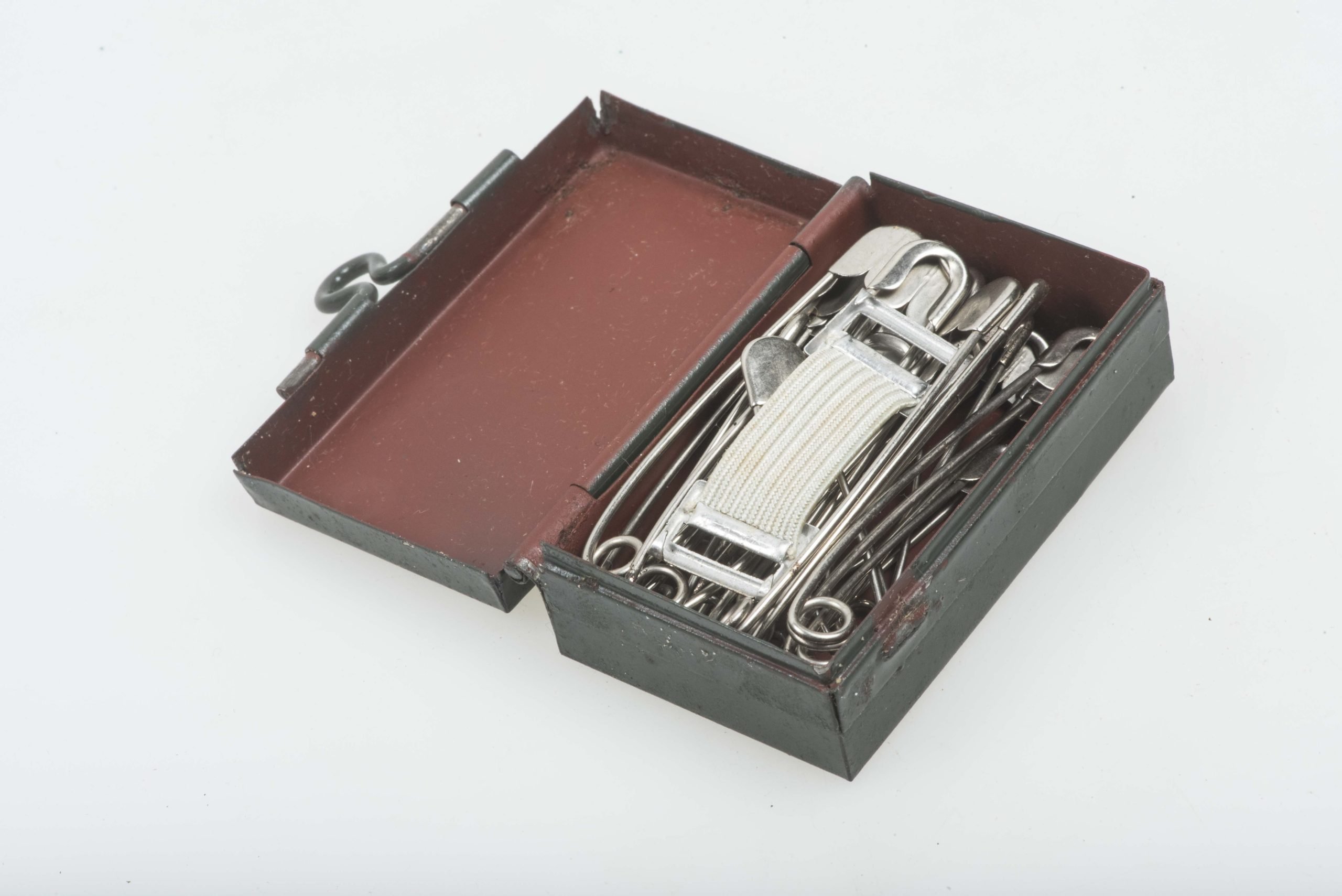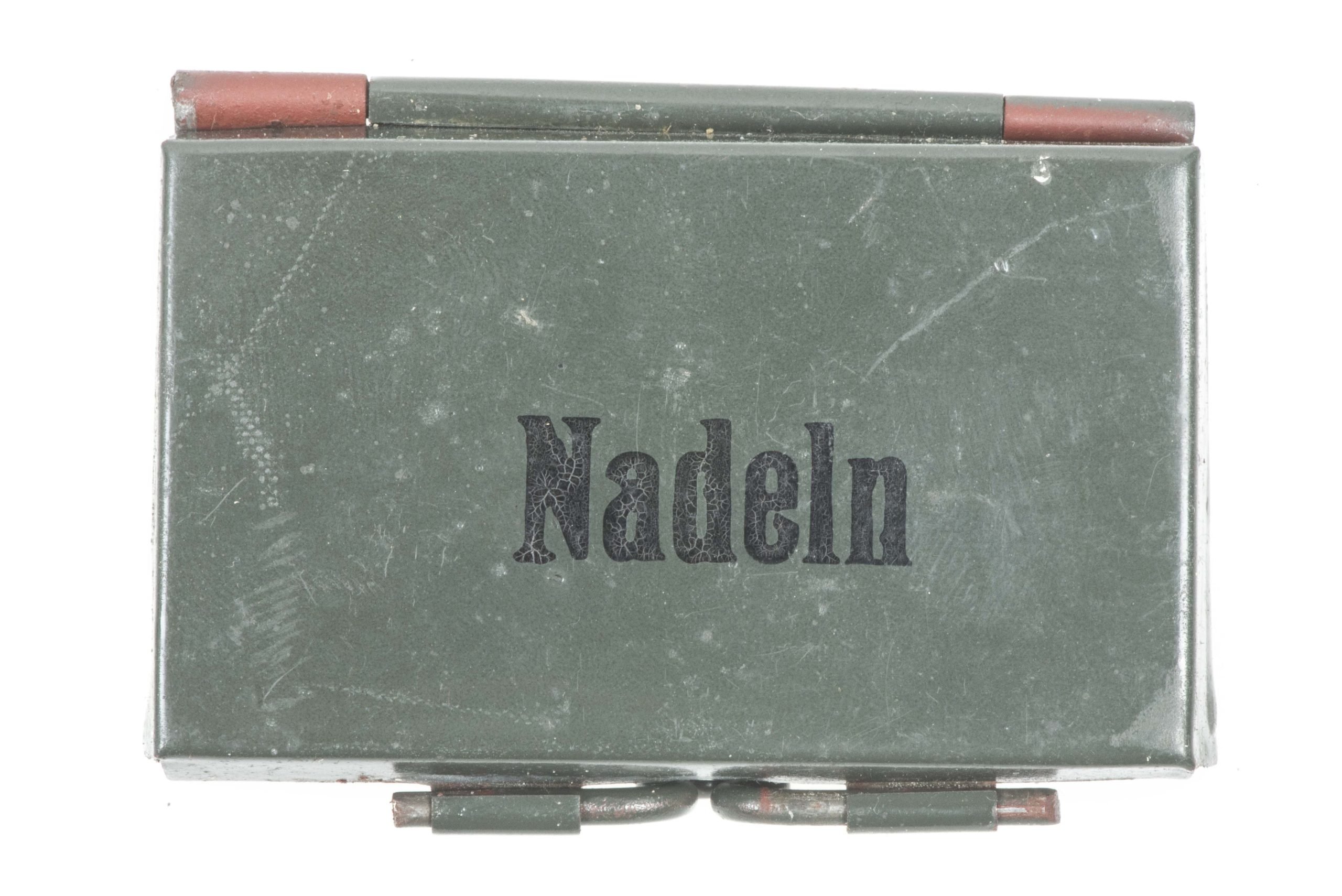 Sanitäter Nadeln container in good used condition with original content. Standard component of any Sanitäter pouch, big or small. The closing latch is missing the locking part but still a nice example!