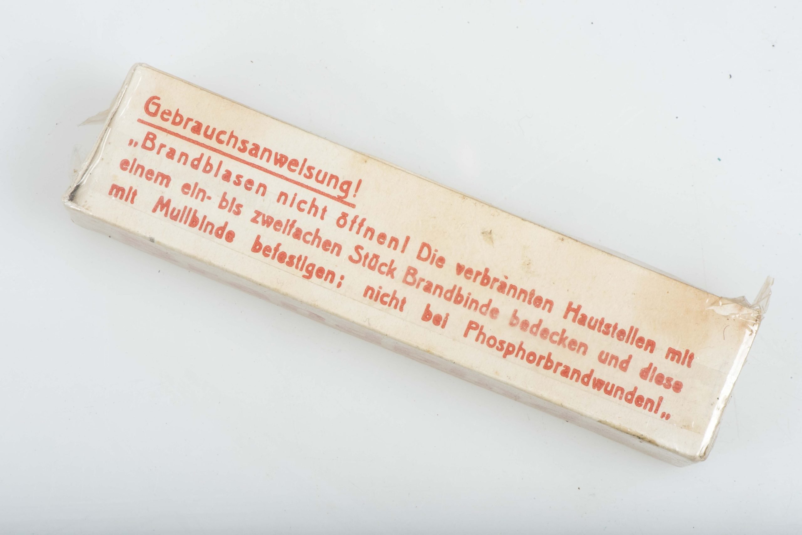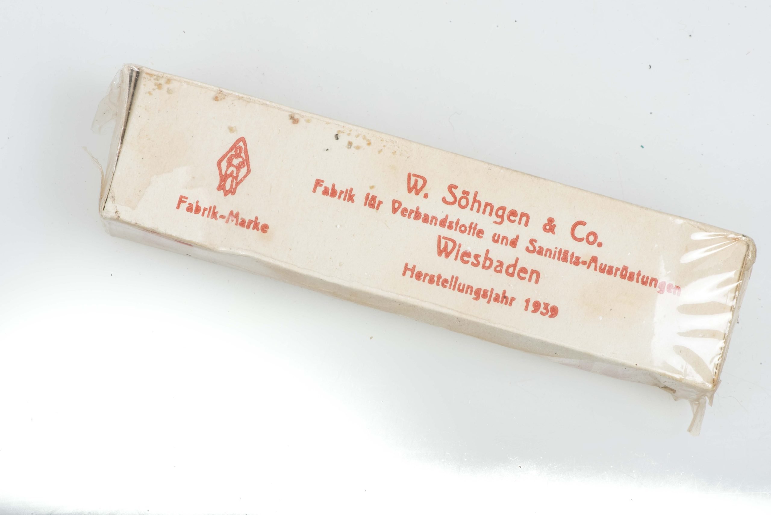 Sanitäter Brandbinde or burn bandage in unused condition. The box is nicely marked Brandbinde W. Söhngen Wiesbaden 1939. Perfect example still originally sealed!