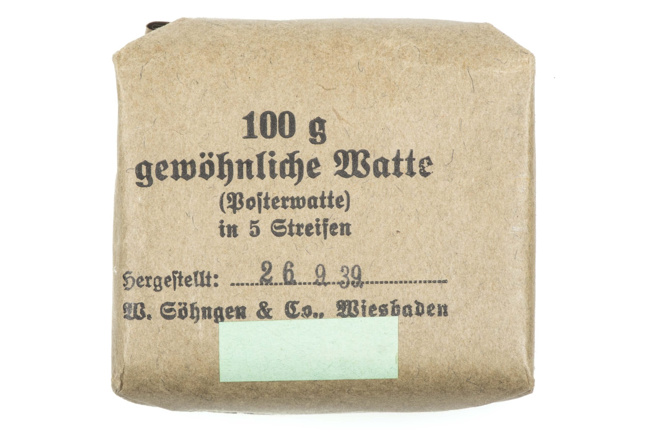 TextbookSanitäter Gewöhnliche Wattedated 26 September 1939 in unissued and unopened condition. A central component in anyVerbandkasten!