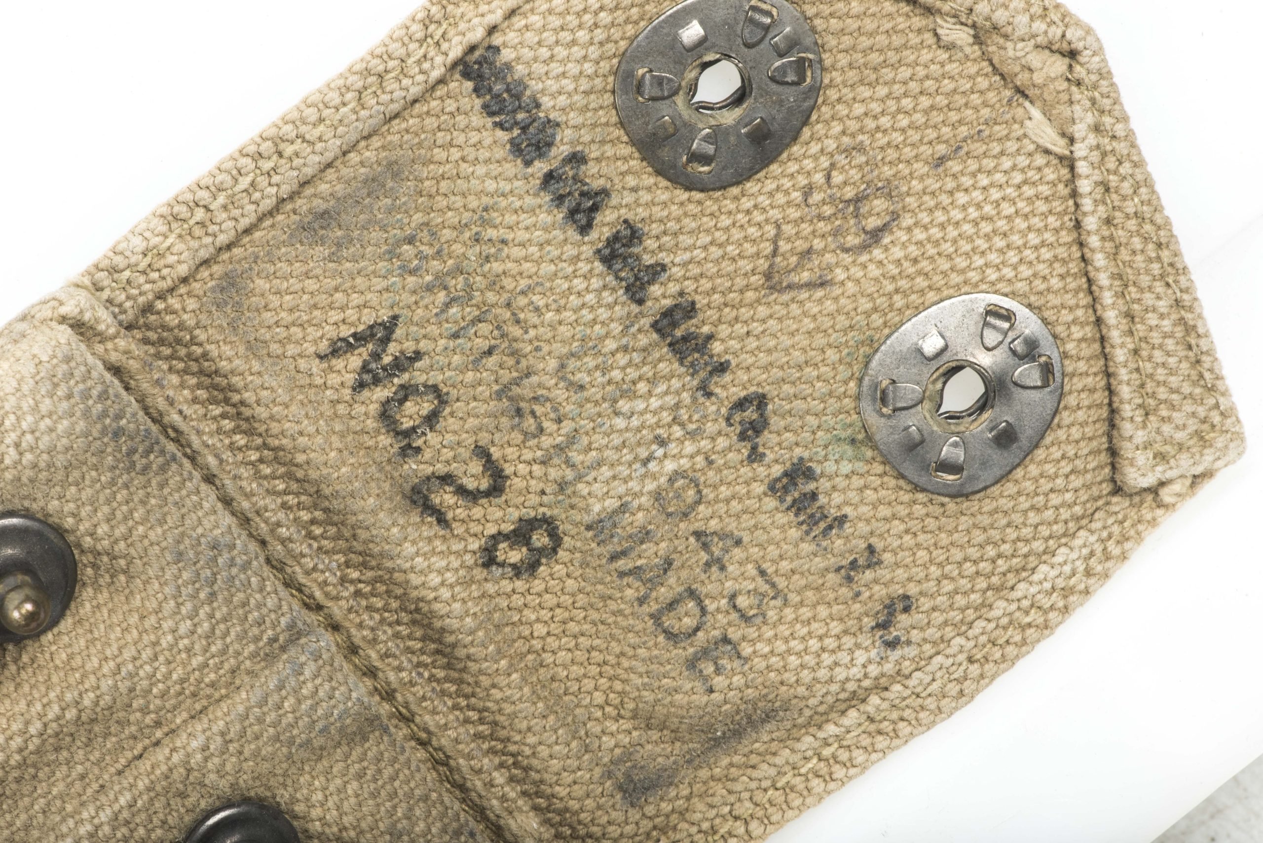 US army issue Colt M1911 magazine pouch. The pouch is nicely marked 1944 and is a British Made example.