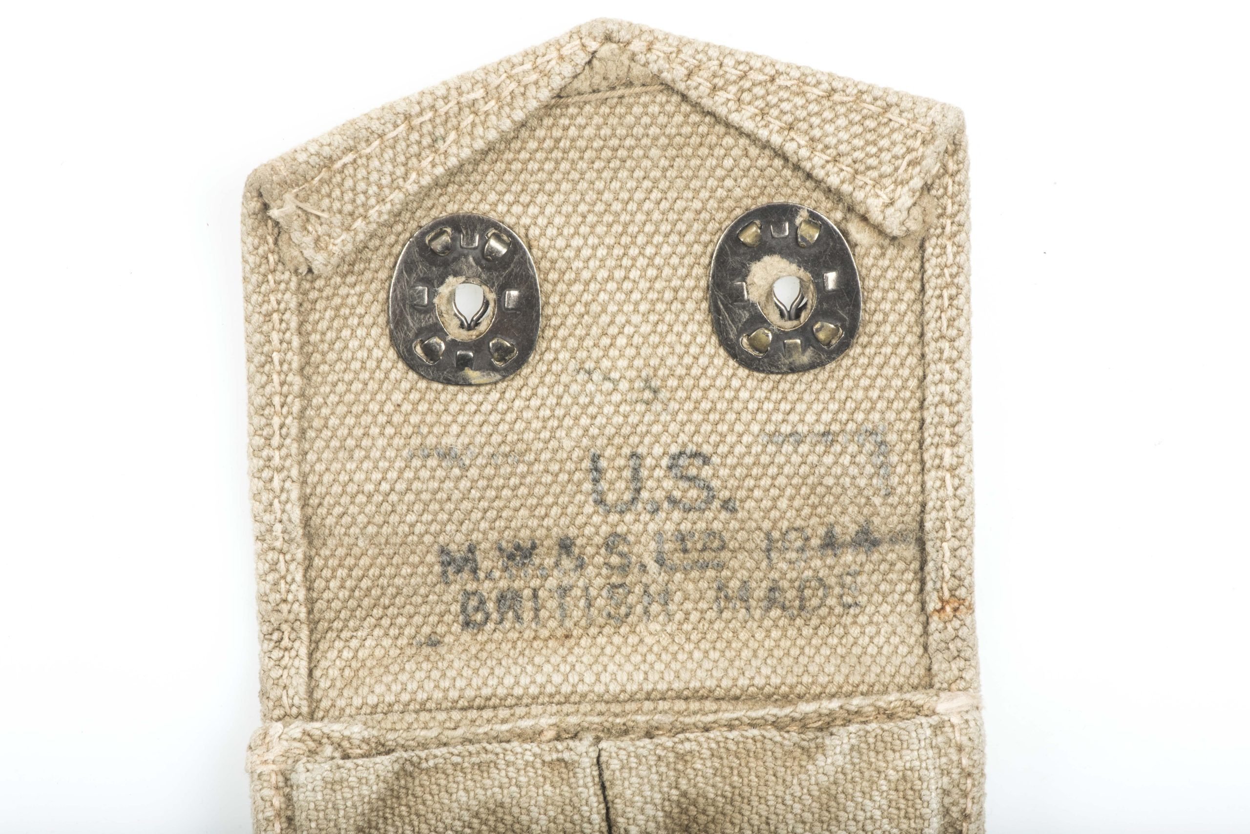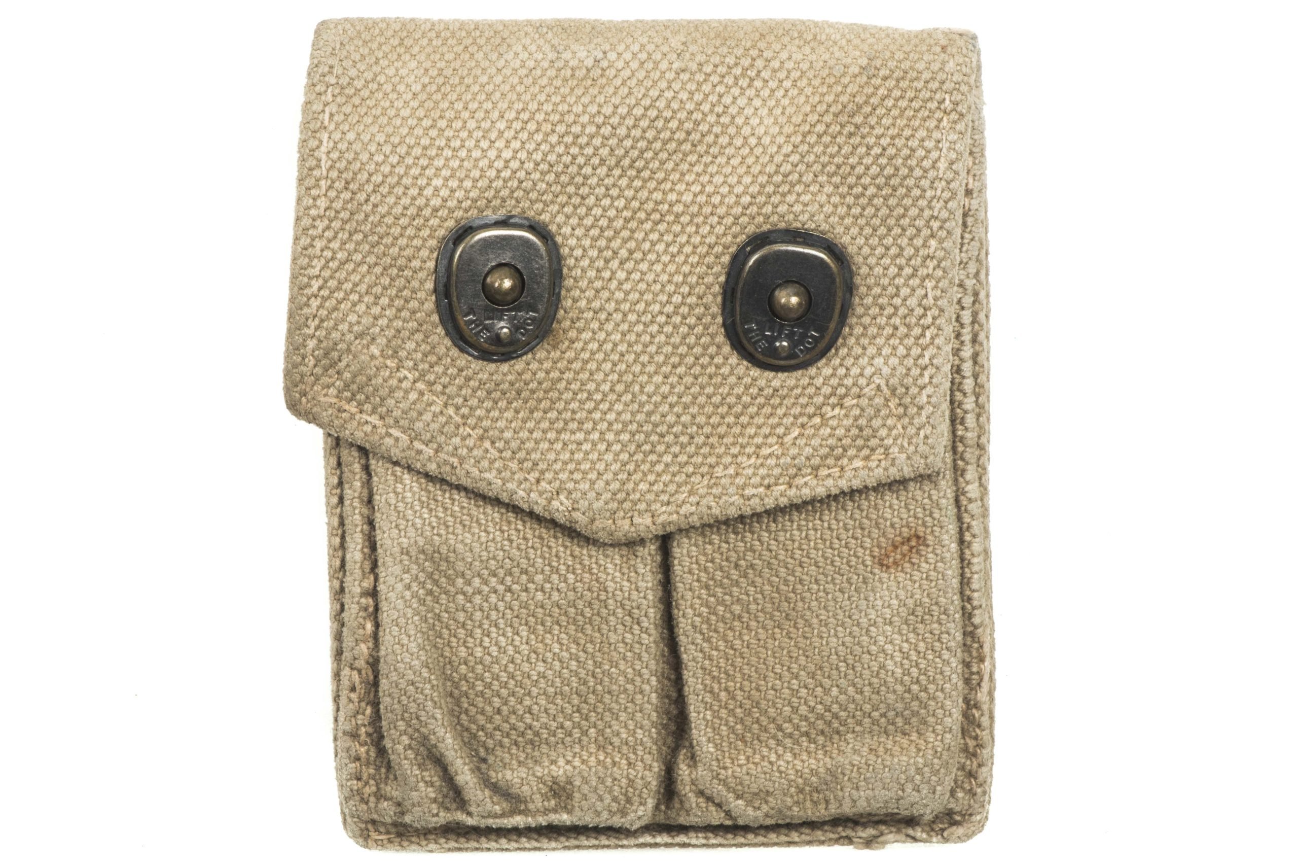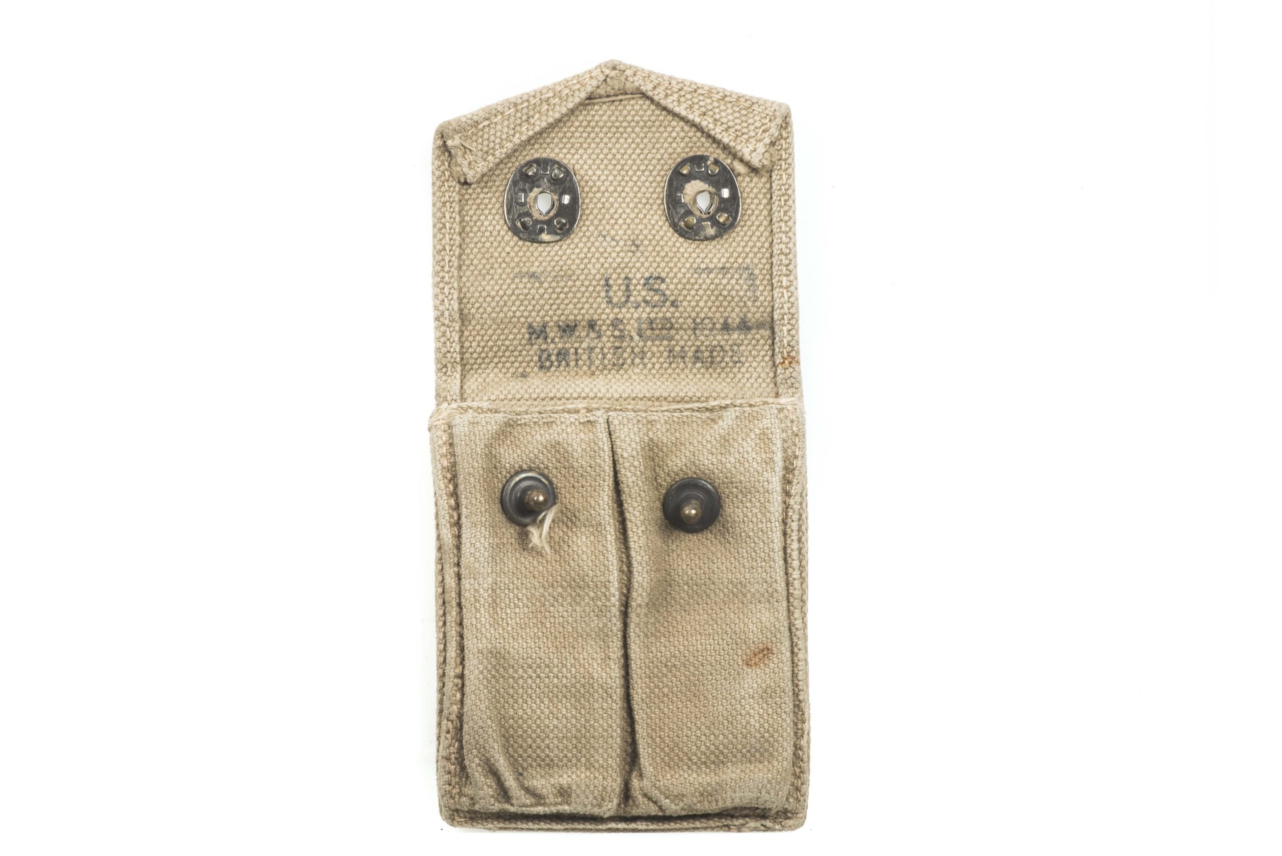 US army issue Colt M1911 magazine pouch. The pouch is nicely marked 1944 and is a British Made example.