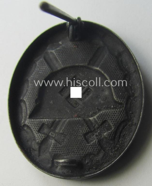 The attractive - and I deem just moderately used- ie. worn - example of a (magnetic) black-class wound-badge (ie. 'Verwundeten-Abzeichen in Schwarz') that truly retains almost all of its original, black-coloured- and/or somewhat 'matted'-like finish: it only shows just minimally wear and was simply nicely preserved over the years. The wound-badge is - as stated above - neatly maker-marked with the makers'-designation: '4' (as is clearly visible on the back of the badge as can be seen on the pictures)that signifies that it deals with a piece that was produced by the desirable 'Steinhauer & Lück'-company as based in the town of Lüdenscheid. Of course, are the (regular- ie. thin-shaped- and also magnetic) pin and/or: (typical) catch (-set-up) fully functional and of course present. This piece has never been cleaned nor polished: it shows some obvious dust and/or minimal staining as to be expected. It will be hard to upgrade this neat and untouched example!