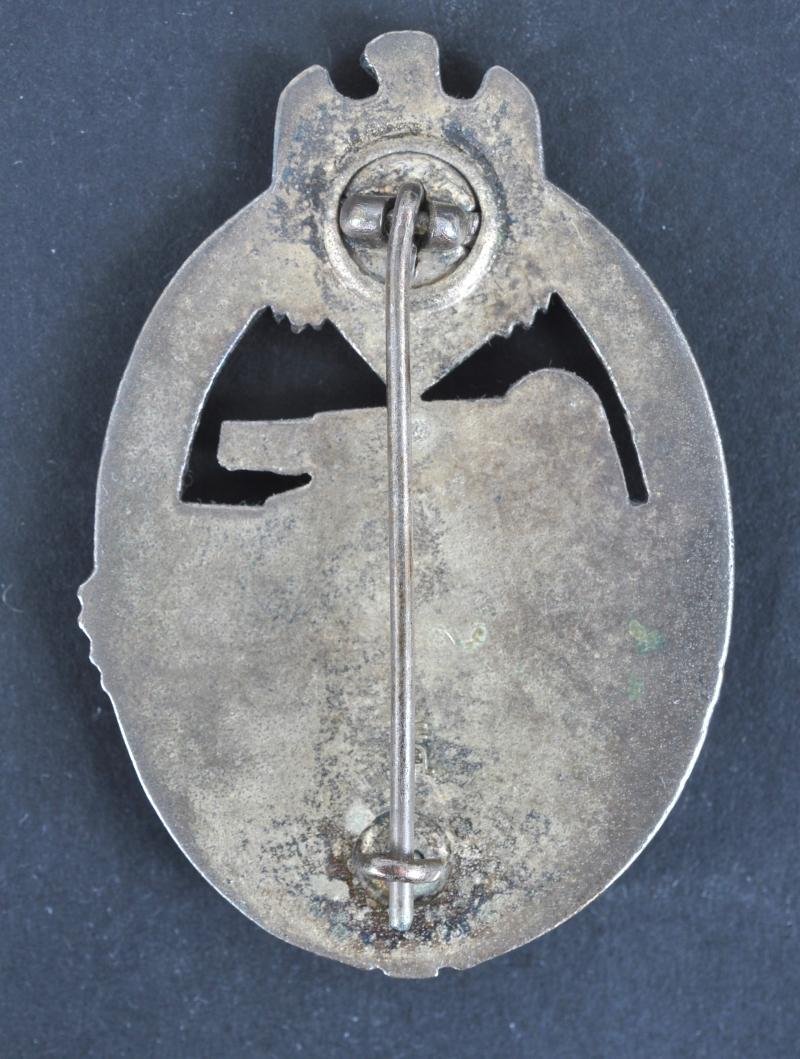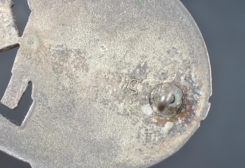Stunning German Tank badge in silver by the maker Aurich Herman with a very high proportion of its original frosting remaining & pin intact. Factory logo for Aurich Herman to reverse.