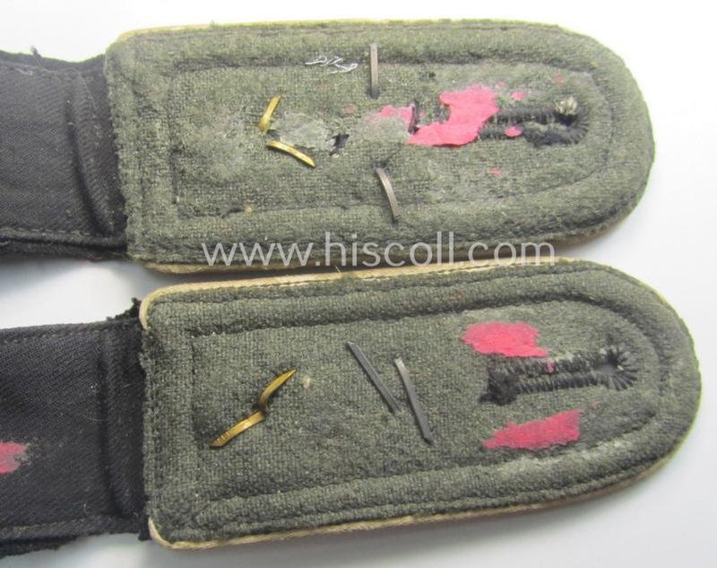 Superb pair of Waffen-SS NCO-type, 'cyphered' shoulderstraps as piped in the white-coloured branchcolour as was intended for usage by an: 'SS-Oberscharführer' who served within the: SS-Rgt. 'Deutschland' (2. SS-Pz-Div. 'Das Reich')