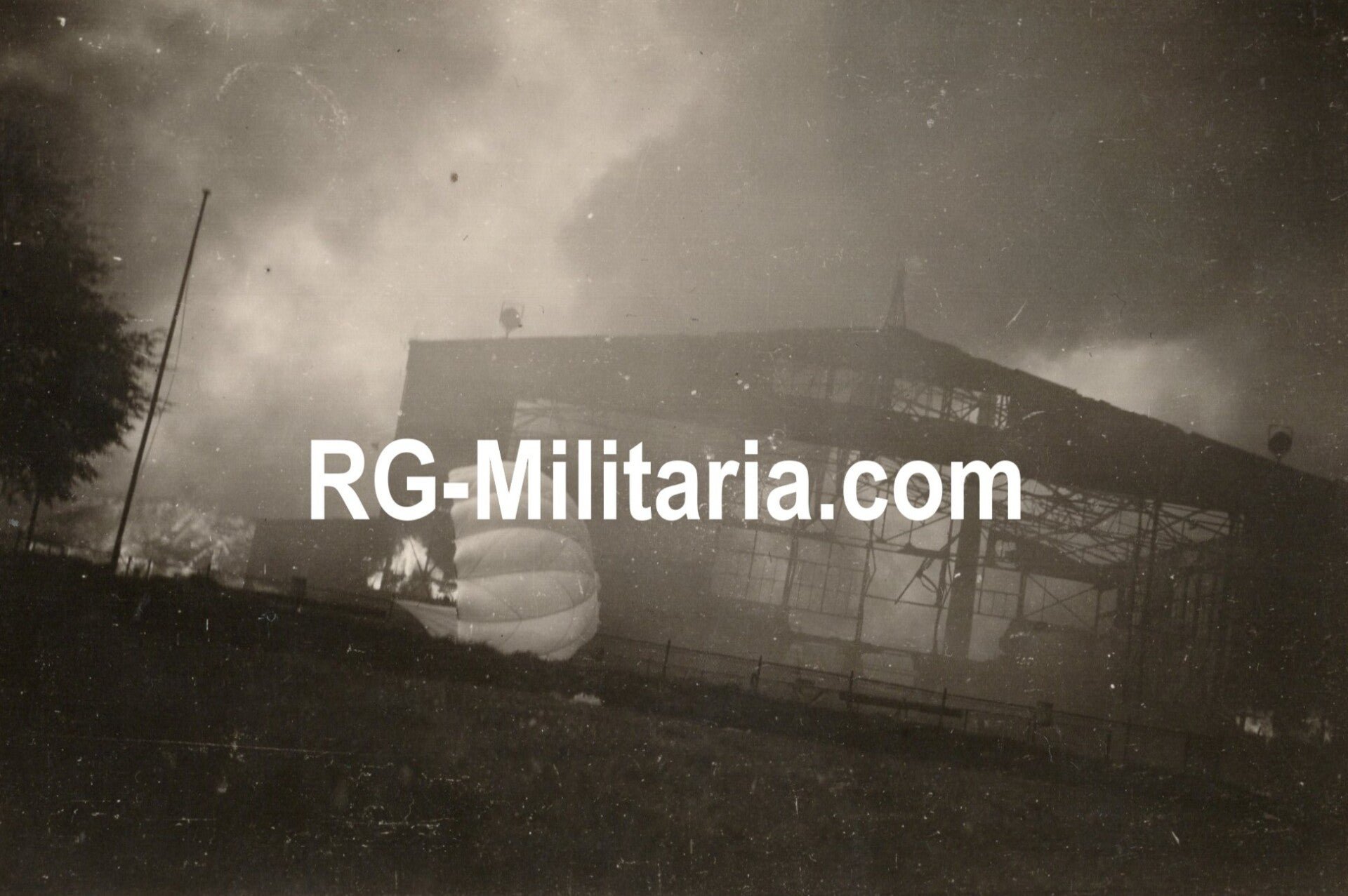 Original WW2 German Photo - German Parachute at the burning Rotterdam airfield of Waalhaven, Holland, May (1940)