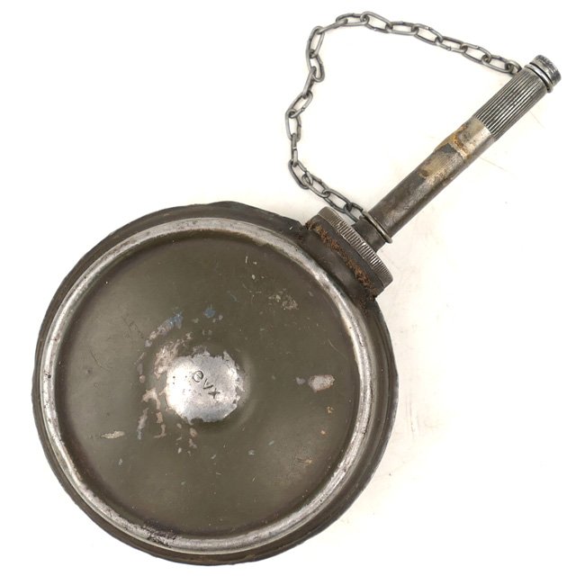 MG34 or MG42 Oiler (Ölkanne). The oiler retains most of its original fieldgrey paint. The oiler is nicely maker marked with three-digit code 'evx' indicating production by the company 'Baumeister, Ad., Metallwarenfabrik' from Lüdenscheid. Nice original example in good used condition!