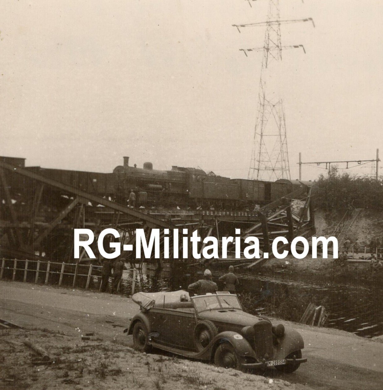 Original WW2 German Photo - Destroyed railway bridge with train in Hasselt, Holland, May (1940)