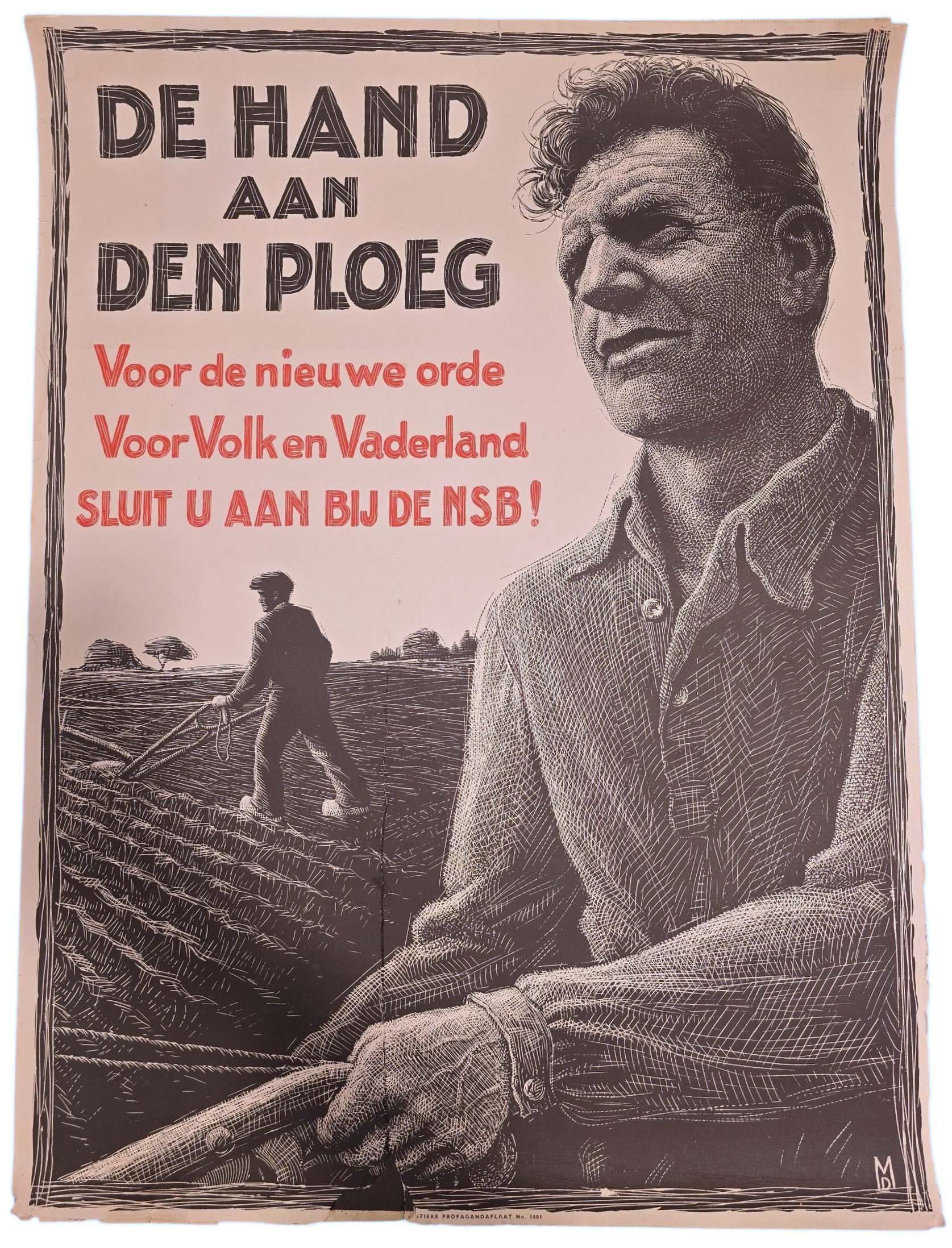 Original WW2 Dutch Collaboration NSB Poster - De Hand aan den ploeg NSB, Dirk Hendrik Melck