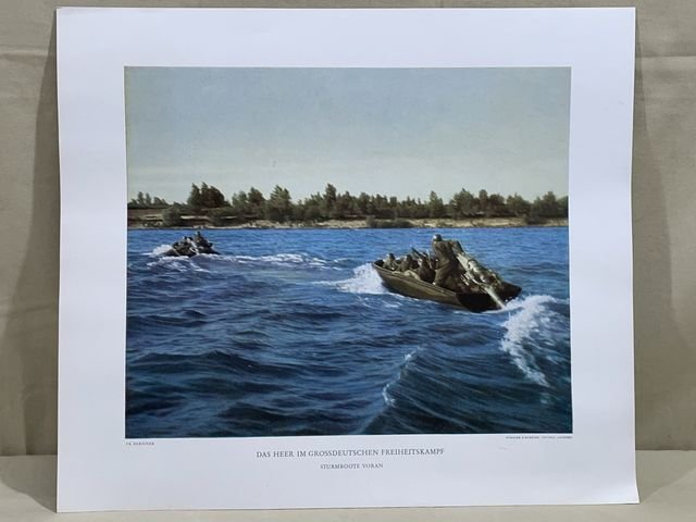Original WWII German Military Themed Color Print, ASSAULT BOATS AHEAD