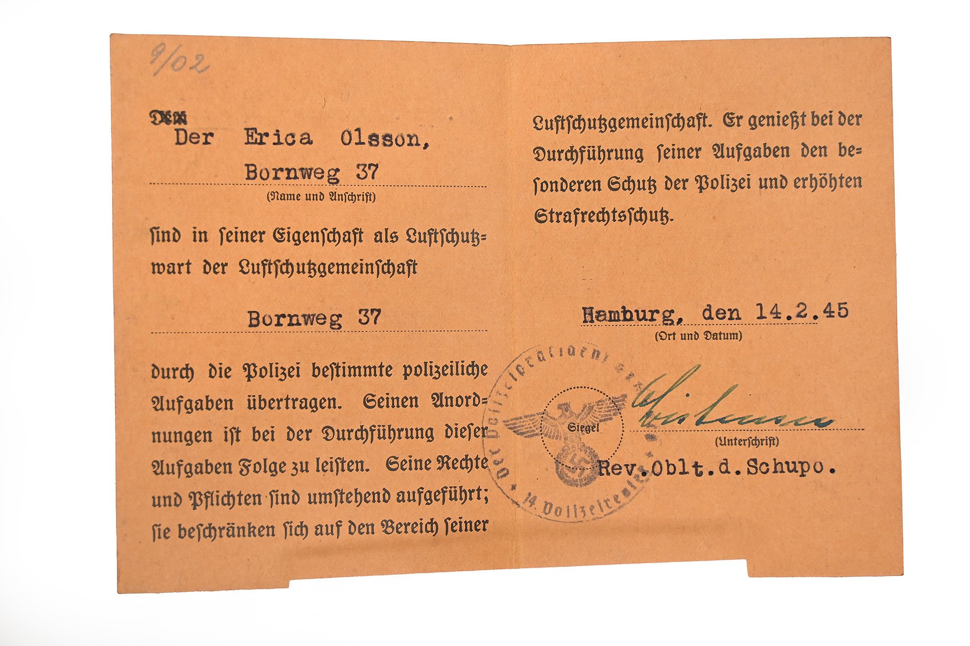 nicely completed document from the luftschutz for a luftschutzwarte..