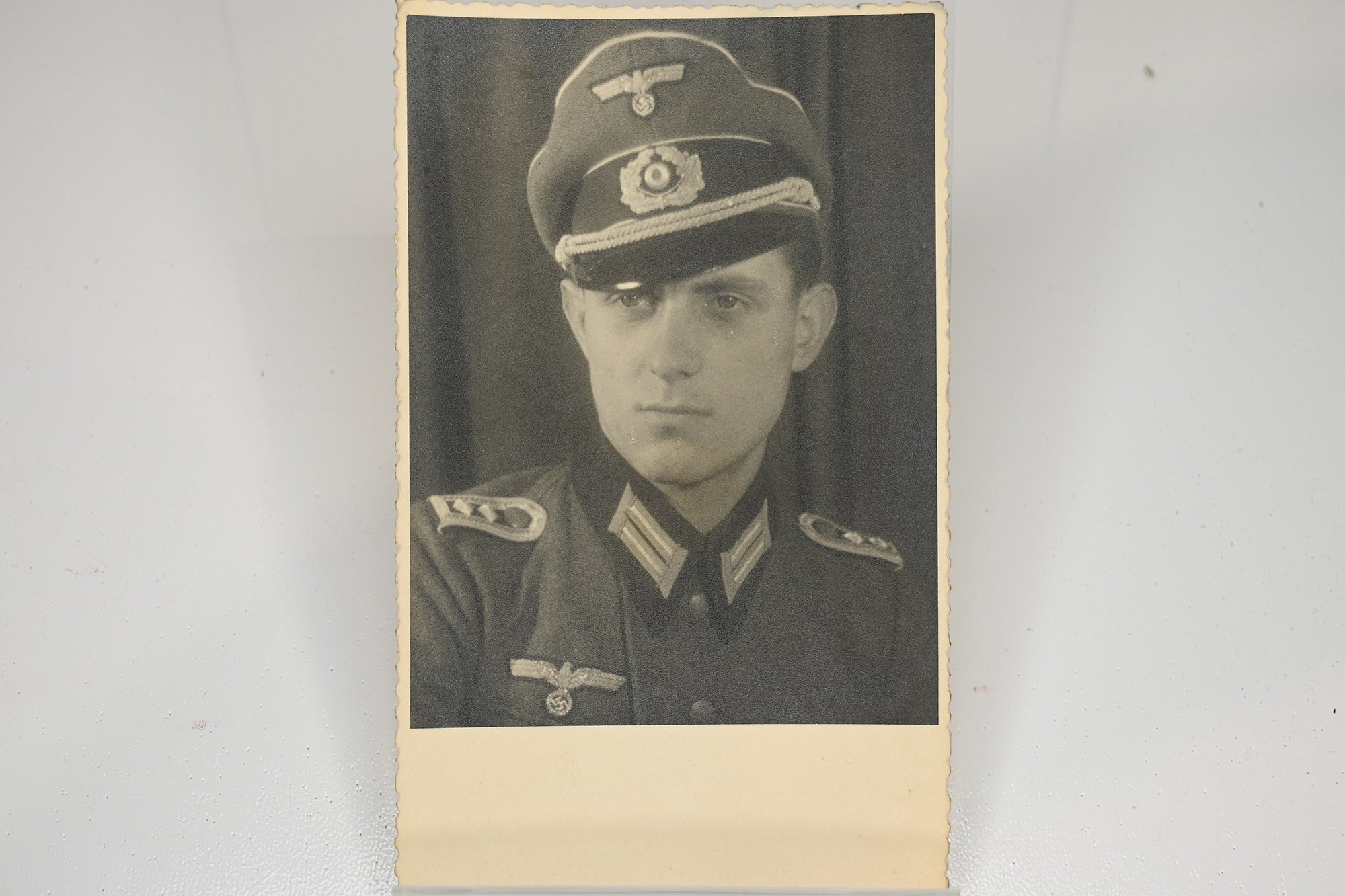 nice clear postcard photo of a hauptmann in the german wehrmacht with a beautiful schirmutze.