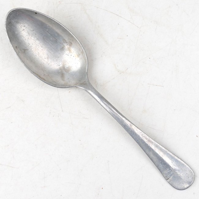 Luftwaffe Cutlery Mess Hall Spoon (Löffel). The aluminum construction spoon is nicely maker-marked and dated 1938. It is also marked with a Luftwaffe type eagle and 'F.L.U.V.' (Flieger Unterkunft Verwaltung) marking. Nice original personal kit item in good used condition!