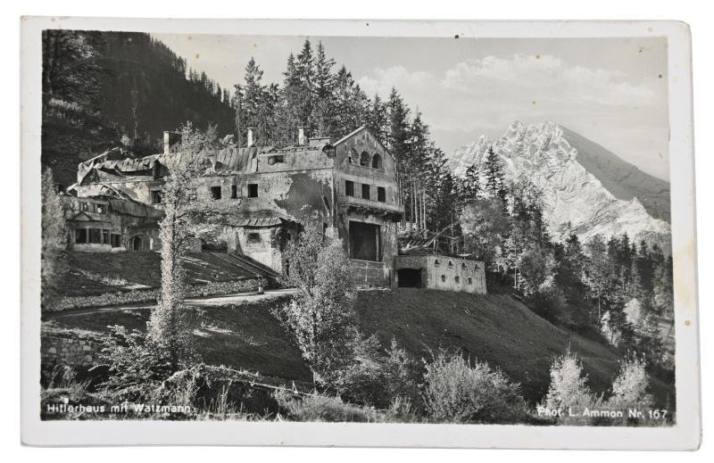In a very nice condition a German Postwar Postcard of the destroyed hitlers home in bergtesgaden.The postcard is stamped 1952.