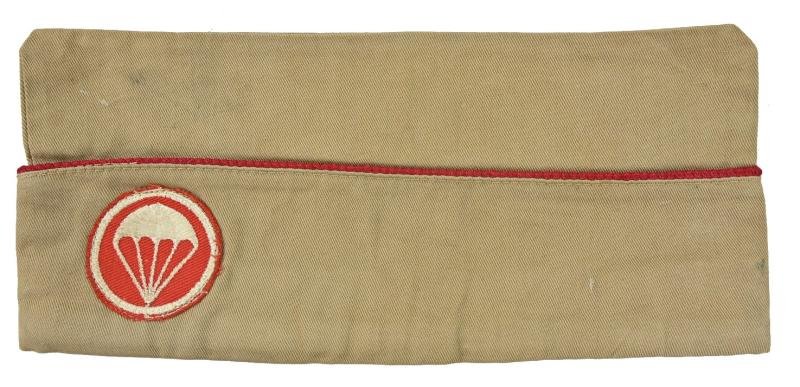 In a very nice condition a US WW2 Airborne/ Paratrooper Summer Garrison Cap Artillery.The cap comes with the red piping, indicating use by the artillery troops.On the inside is the laundrynumber of the former owner present and comes in a size of 6 7/8''.