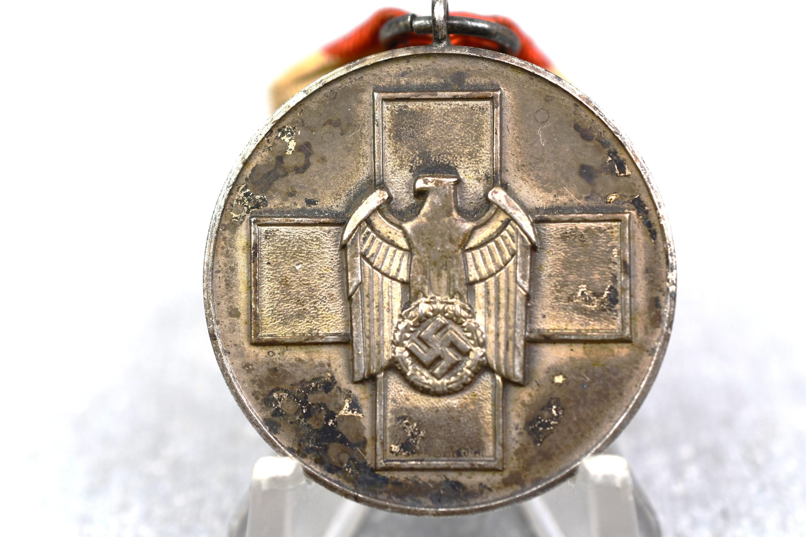 Beautiful Soical Welfare medal 'Medaille für deutsche Volkspflege'. Tombac medal with silver plated finish, shows some wear on the front and back. Overall remains in excellent condition with nearly all the plating present. Comes with its original ribbon.