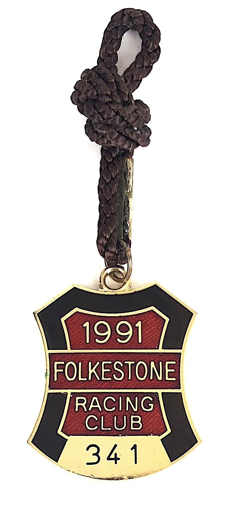 A good original gentlemen's '1991 Folkestone Racing Club enamel badge', impressed to the front with official issue number '341'. Very good condition, no damage to the enamel and complete with original cord.