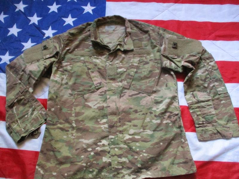 genuine 100% GENUINE us army issue AMERICAN MADE ACU - OCP UNIFORM100% GENUINE ISSUE TO THE USARMY !!! THE acu combat shirt jacket ITS THE OPERATIONAL ISSUE ONE MADE FROM RIPSTOP FR FLAME RETARDENT MATERIAL AND IN THE LATEST AMERICAM ARMY MULTICAMFEATURES =It's built to last. ACU Coat in RIPSTOP FLAME RETARDENT fabric enhance its durability, while a bi-swing back gives you improved range of motion. BUTTON sleeve cuff closures provide an adjustable fit, while a 2 pen pocket on the sleeve and minimized shoulder pockets add functionality. The ACU Coat is fade-, shrink- and wrinkle-resistant, stain- and liquid-repellent .genuine issueSewn to various revisions of military specificationBattle Rip® flame resistant fabric is comfortable and durableFade-, shrink- and wrinkle-resistantFelled seams throughout for enhanced durability2 large bi cep zip opening arm pockets with velcro pannels for unit idTwo tilted chest pockets with hook and loop closureCovered two-way zipper front with cloth pullBi-swing back improves range of motionTwo chest loop fields and upper-arm pockets with loop-fields for insigniaNIR compliantfore arm pen slot pocketFold down collarLengthened upper-arm pockets with loop patch for insigniaIRR / IFF GLINT BLACK SQUARES ON ARMS FOR COMBAT ID WITH COVERSSIZE = LABEL SAYS SIZE LARGE / LONG AND DESIGNED FOR / TO FIT 41' - 45' CHEST AND 71' TALL AND TALLER PERSON , THEY ARE MADE ON THE LARGER SIZE FOR OUTER LAYER TO GO OVER MID AND BASE LAYERS so might even fit a civvie size EXTRA LARGE ... but PLEASE go off the measurements = MEASURES 26' or 66cm ARM PIT TO PIT / 24' ARM PIT TO CUFF END / 28' shoulder seam to cuff end / 20 1/2 ' shoulder seam to seam , / 31 1/2' BASE OF COLLAR TO HEM .CONDITION = IT LOOKS TO BE IN NORMAL USED WORN CONDITION ...AS IN PICTURESCOLOUR = USA MULTICAM CAMO .... ONE OF THE MOST EFFECTIVE CAMOS IN THE WORLD ! BLENDS INTO ALL SUROuNDINGS !!!! 1000% GENUINE ISSUE !!