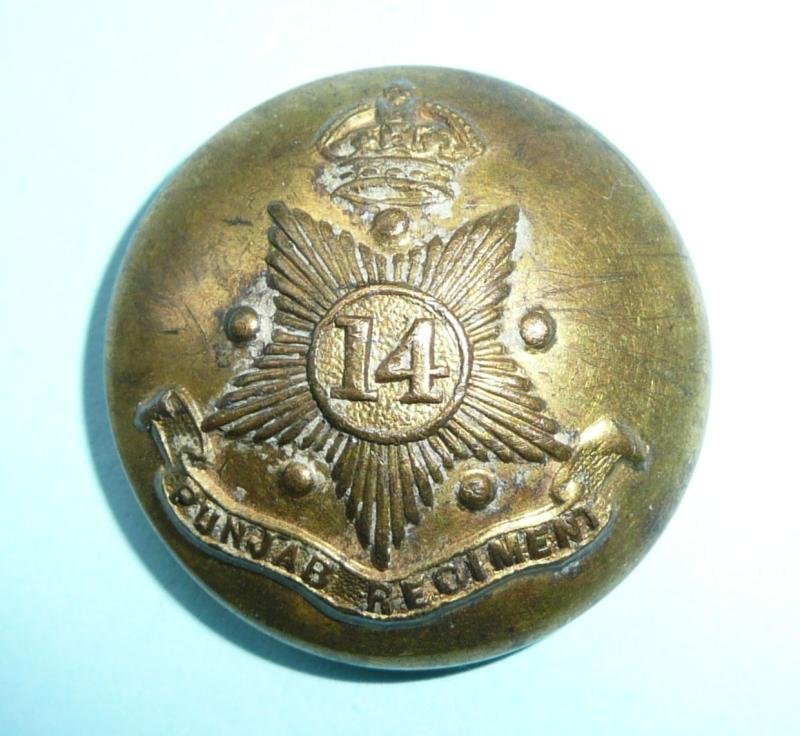British Indian Army - 14th Punjagb Regiment Officer's Large Pattern Gilt Brass Button, King's Crown