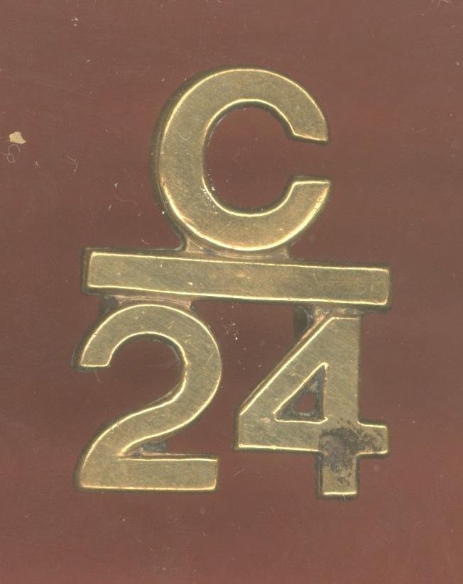 A good scarce brass 'C' over '24' badge. Two loops to the reverse. Makers stamp Tiptaft, B'ham. VGC......