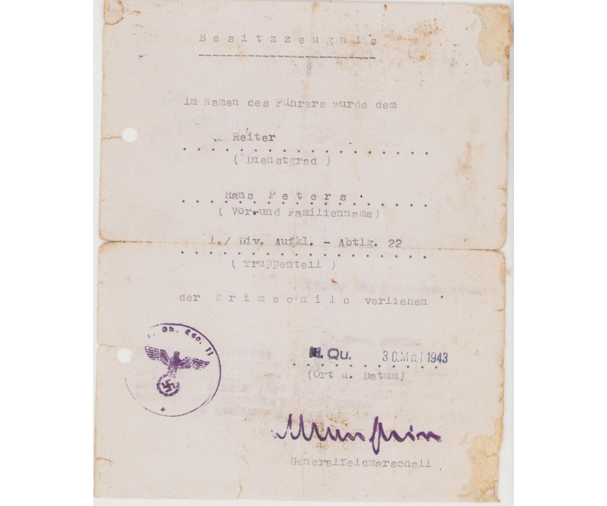 Div.Aufkl.-Abtlg. 22 Krimschild Document