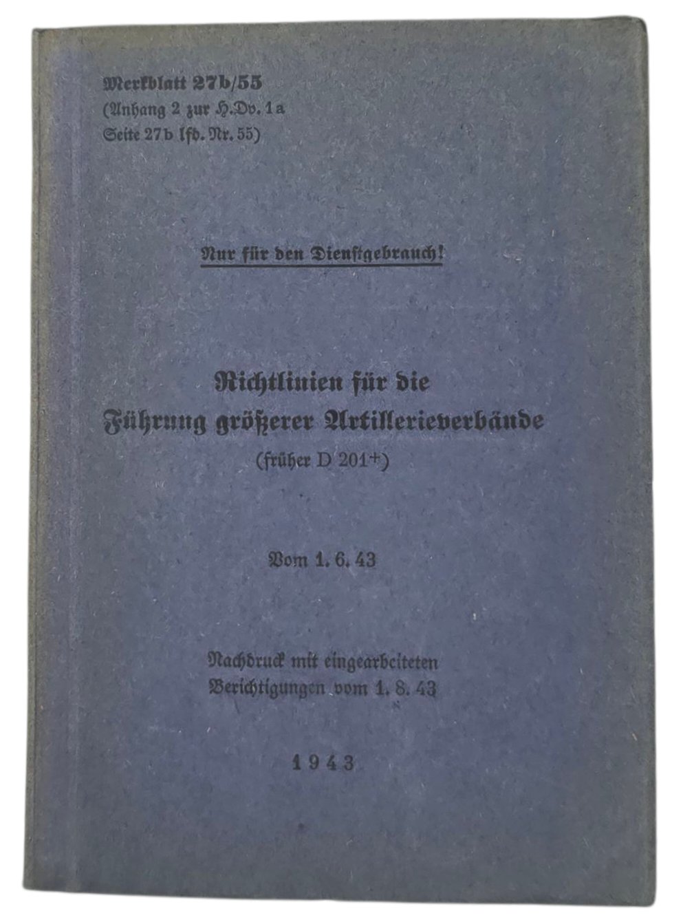 Original WW2 German Book - Richtlinien fĂŒr die FĂŒhrung grösserer ArtillerieverbĂ€nde 27b/55 (1943)Origineel Wo2 Duits Boek - RichtlinienfĂŒr die FĂŒhrung grösserer ArtillerieverbĂ€nde 27b/55 (1943)