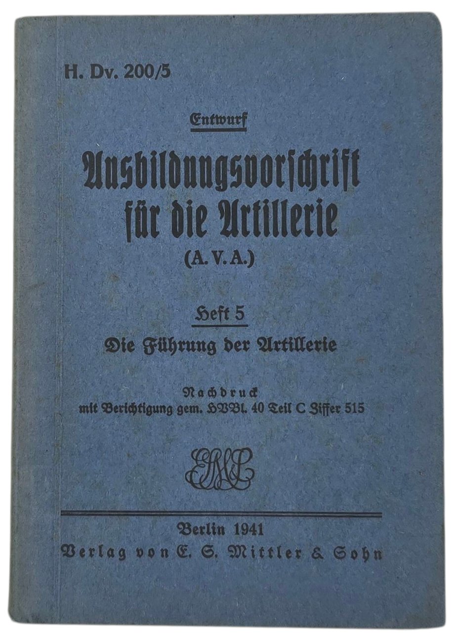 Original WW2 German Book - Ausbildungsvorschrift für die Artillerie Heft 5 H. Dv. 200/5 (1941)Origineel Wo2 Duits Boek -Ausbildungsvorschrift für die Artillerie Heft 5 H. Dv. 200/5 (1941)