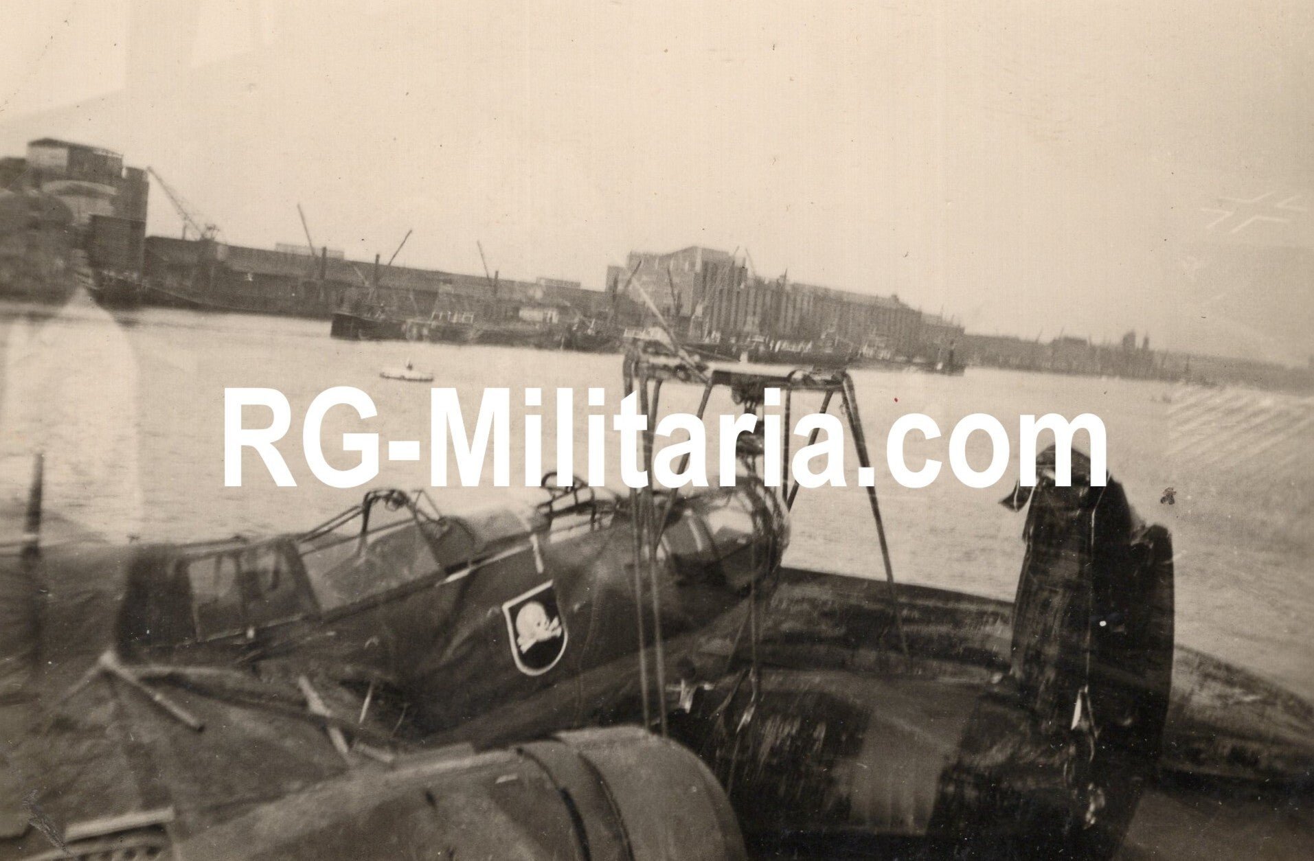 Original WW2 German Photo - Heinkel 115C Kustenfliegergruppe 106 airplane on a ponton boat at the Fokker Factory Papaverweg, Amsterdam (1940)Approximately 6 x 9 cmVery interesting and rare picture of a Heinkel 115C water airplane from the Kustenfliegergruppe 106, based at the Schellingwoude water airbase in Amsterdam. This Heinkel was used to place bombs in the water at night against Allied attacks on the water. The Heinkel was sent to the Fokker Factory at the Papaverweg in Amsterdam to be taken apart or to be repaired. The picture was made in 1940.Originele Wo2 Duitse Foto - Heinkel 115C Kustenfliegergruppe 106 vliegtuig op een pontonboot bij de Fokkerfabriek Papaverweg, Amsterdam (1940)Ongeveer 6 x 9 cmZeer interessante en zeldzame foto van een Heinkel 115C watervliegtuig van de Kustenfliegergruppe 106, gestationeerd op de watervliegbasis Schellingwoude in Amsterdam. Deze Heinkel werd 's nachts gebruikt om bommen in het water te plaatsen tegen geallieerde aanvallen op het water. De Heinkel werd naar de Fokkerfabriek aan de Papaverweg in Amsterdam gestuurd om gedemonteerd of gerepareerd te worden. De foto is gemaakt in 1940.
