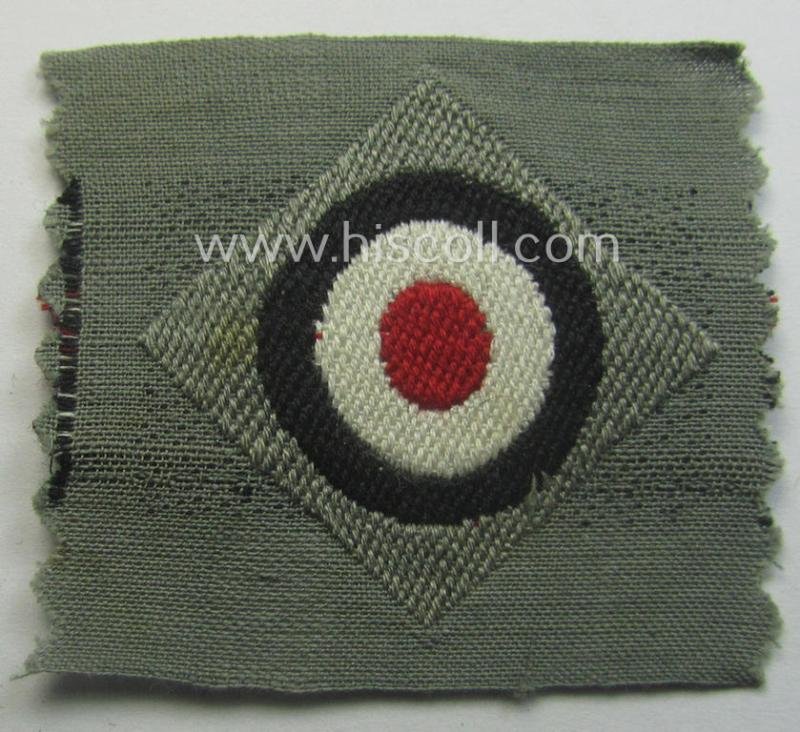The attractive - and actually truly rarely found! - WH (Heeres) enlisted-mens'- (ie. NCO-) type cocarde (ie. 'Kokarde für Schiffchenmütze') on offer here was simply never used nor worn and comes in a non-folded- (nor confectioned), condition: it can easily be graded 'virtually mint-/unissued' but nevertheless shows some minimal age ie. staining (simply caused by decades of storage only). These early- ie. pre-war-type, WH (Heeres) 'standard'-pattern side-cap-cocardes can easily be graded as one of the more difficult to obtain cocardes of the period. I know that my asking-price is rather high but these neat (greyish-like- albeit field-grey-coloured) WH (Heeres) replacement-cocardes are hardly ever offered for sale. Simply a neat replacement-item that is very hard to find if needed!