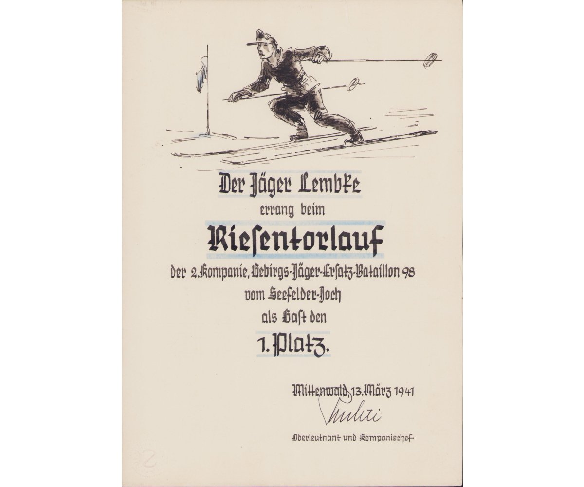 Very nice Gebirgsjäger related ski slalom contest award document in good condition.