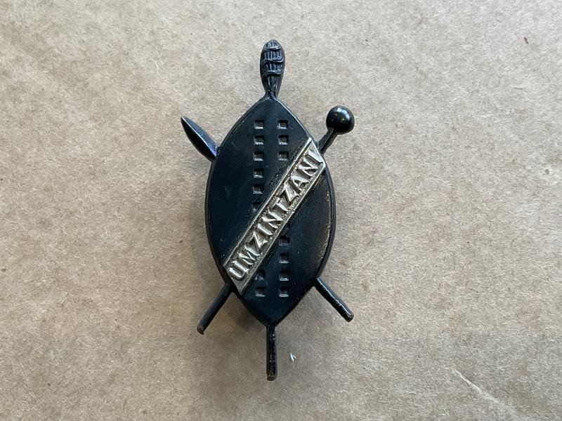 S. African Prince Alfreds Volunteer Guards officers collar badge, very high quality blackened brass with white metal banner across the shield.