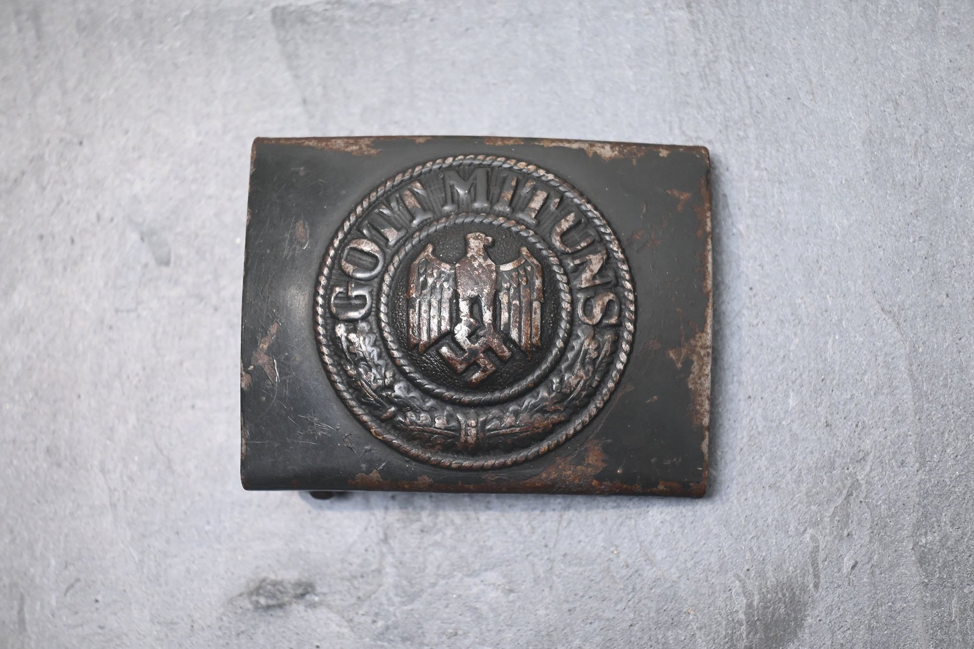 Beautifully worn blue steel belt buckle, stamped with n&h 1942, which is the maker's code for noelle&hueck and produced in 1942.