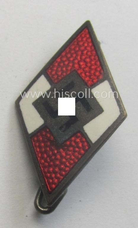 HJ (ie. 'Hitlerjugend') enamelled lapel-pin (ie.: 'Raute') with a: 'RzM - M1/9'-makers'-designation