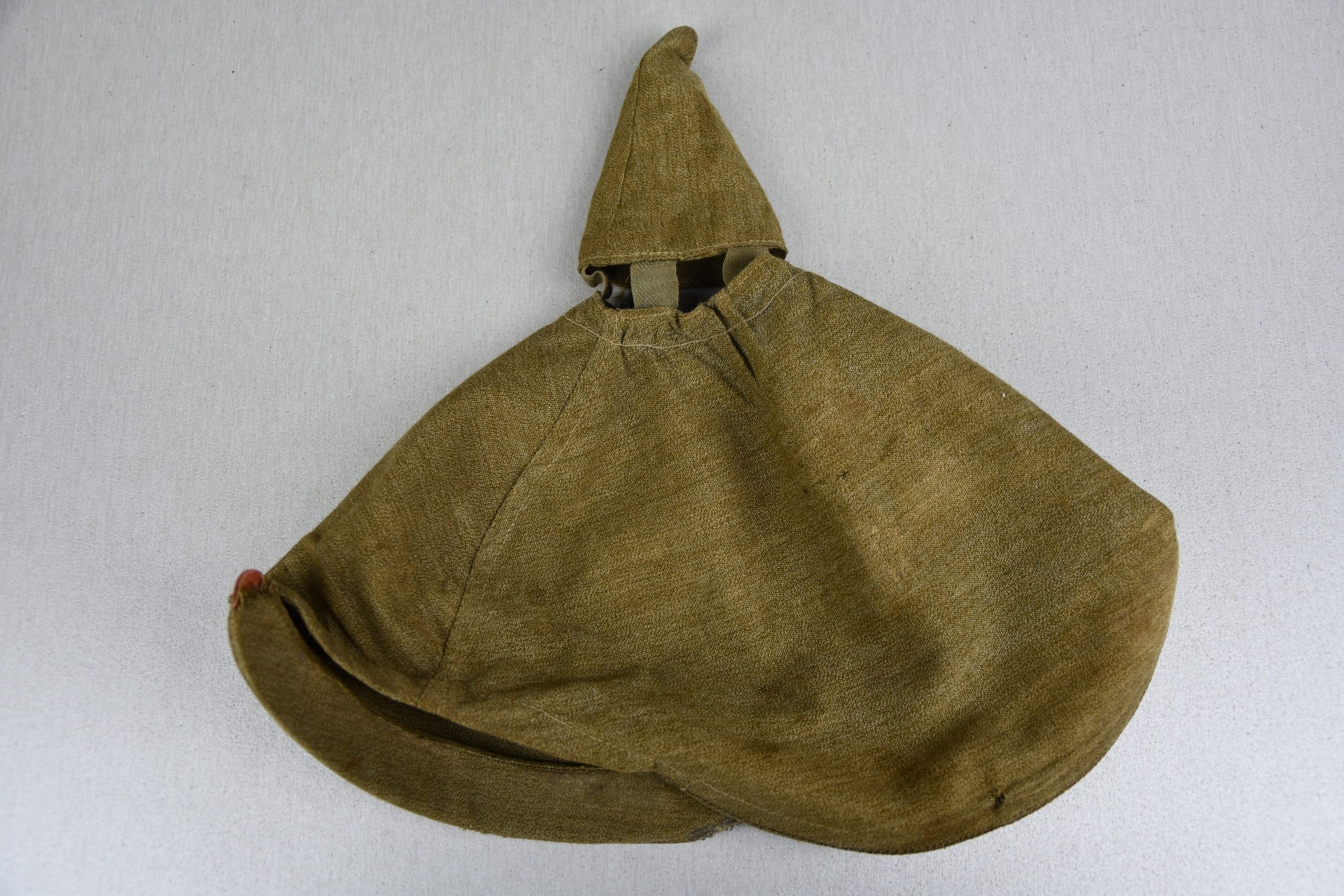 Genuine and good looking, light worn Pickelhaube cover in mustard collard cotton. Marked D.R.P. but faded.
