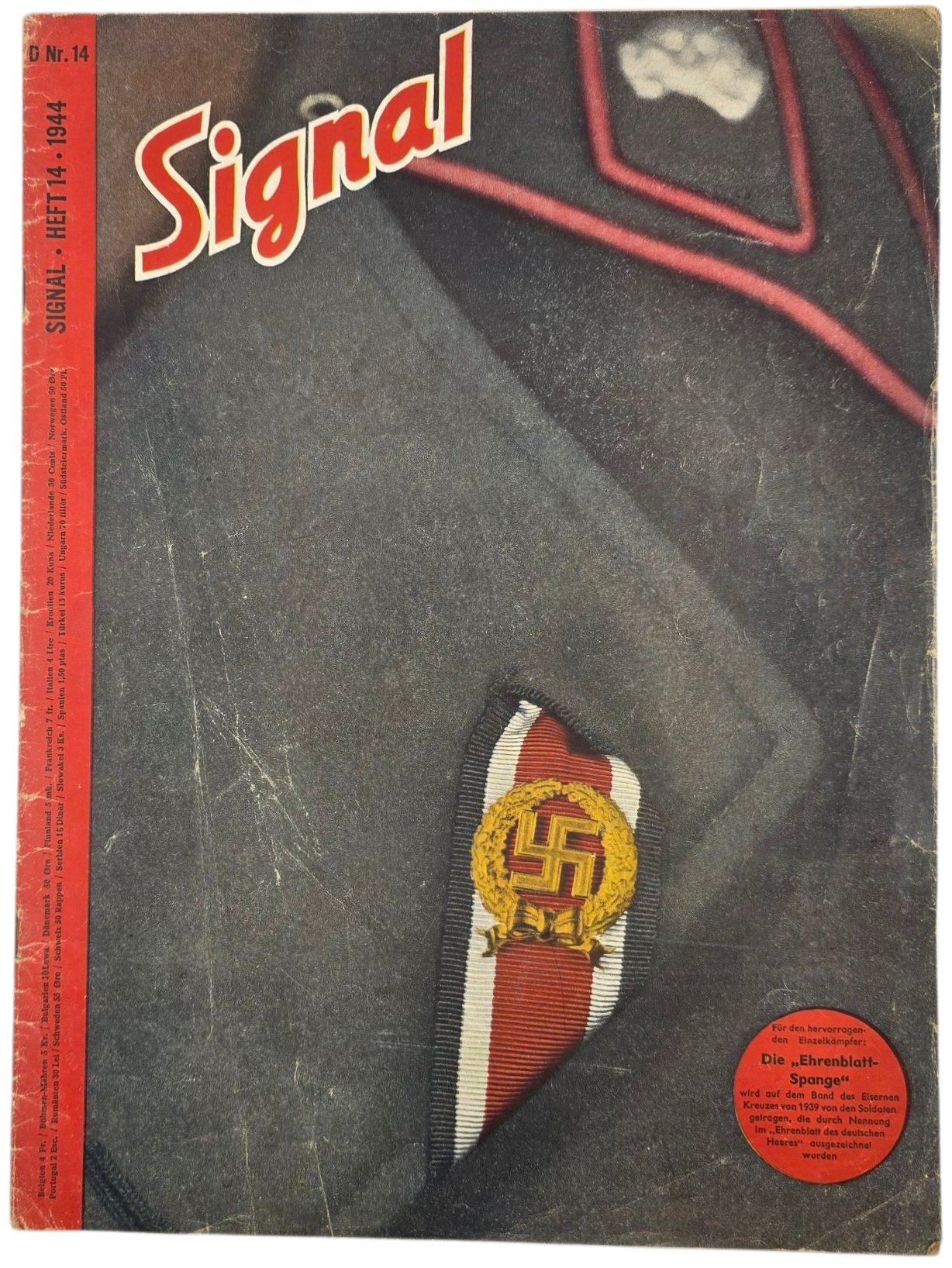 Original WW2 German Magazine -Signal No. 14. German language (1944)The German magazine ''Signal'' is probably the most iconic WWII magazine published during the war. The magazine has been published in many European languages from 1940 to the end of the nazi rule of Germany in 1945. While the wartime editions are not hard to find, the first 4 of 1940 and every edition above No. 14 from 1944 are difficult to come across.This edition is in good condition.Origineel Wo2 Duits Tijdschrift -Signal No. 14. Duitstalig (1944)Het Duitse tijdschrift ''Signaal'' is hoogstwaarschijnlijk het meest iconische Wo2 tijdschrift uitgegeven tijdens de Tweede Wereldoorlog. Dit tijdschrift is in vele talen uitgegeven vanaf 1940 tot het einde van de nazi heerschappij van Duitsland in 1945. Terwijl de oorlogse edities van Signal niet moeilijk te vinden zijn, zijn de eerste vier edities van 1940 en elke editie na nummer 14 van 1944 lastig te vinden.Dit exemplaar is in goede conditie.