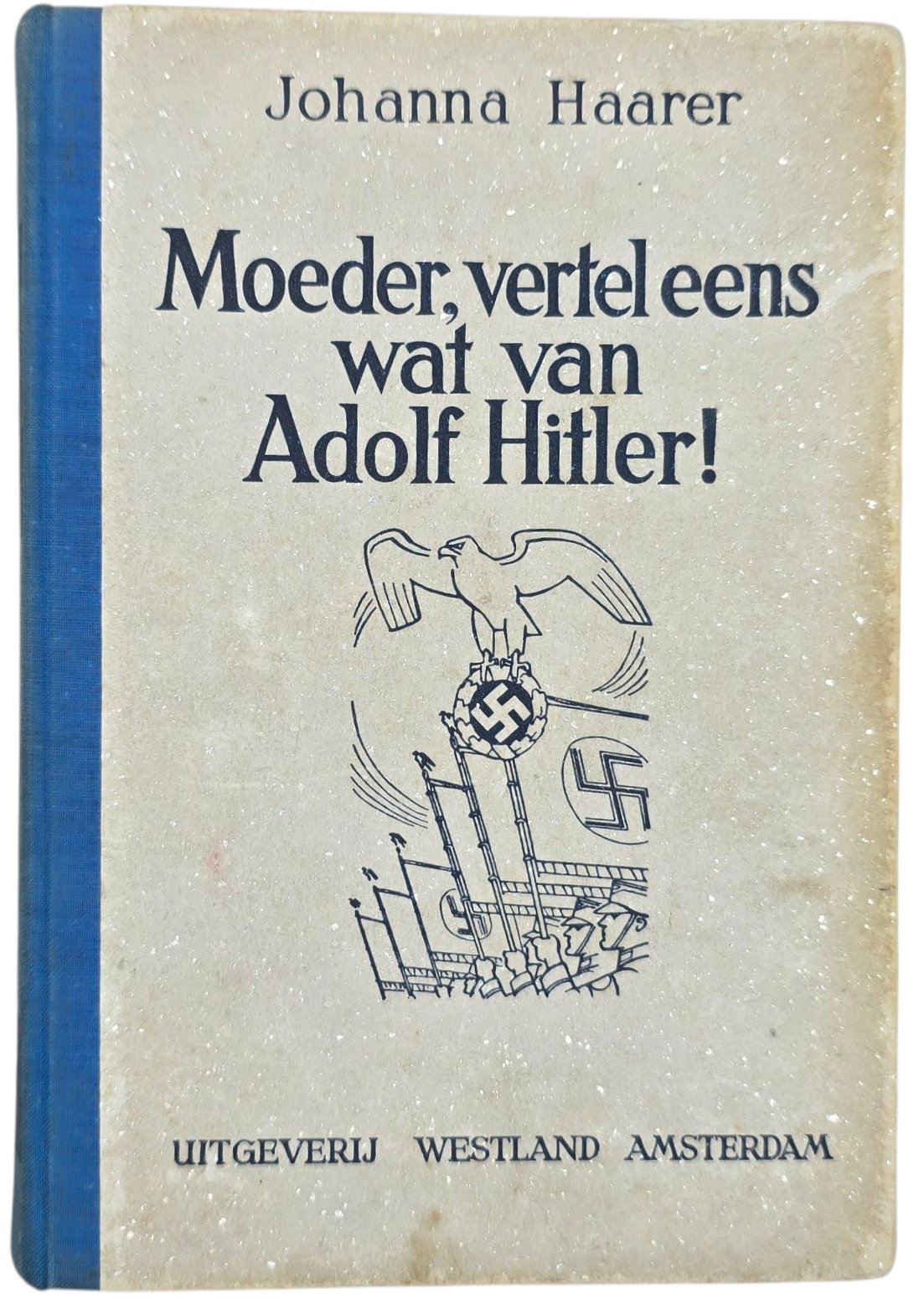 Original WW2 Dutch Collaboration Book - Moeder, vertel eens wat van Adolf Hitler!, Johanna Haarer, 2nd edition (1942)Translated to Dutch by Steven Barends (who also translated Hitler's Mein Kampf to Dutch). Published by the NSB publisher Westland. With text in the front about it being a gift.Origineel Wo2 Nederlands Collaboratie Boek - Moeder, vertel eens wat van Adolf Hitler!, Johanna Haarer, 2de druk (1942)Vertaald in het Nederlands door Steven Barends (dezelfde man die Hitler's Mein Kampf vertaald heeft.) Uitgegeven door de NSB uitgeverij Westland. Met opdracht als verjaardagsgeschenk.