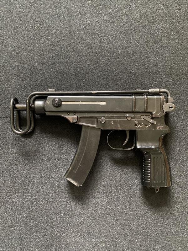 This is a nice deactivated Skorpion WZ61 7.65 smg which has the harder to find black plastic grips and a fold up stock, this was deactivated in 2023 so it has a moving cocking handle under spring pressure, removable magazine with moving trigger and safety. For Non EU Sales Only. UK Sales only. Please email before making purchase.The Škorpion vz. 61 (or Sa vz. 61 Skorpion) is a Czechoslovak machine pistol developed in 1959 by Miroslav Rybář (1924–1970) and produced under the official designation Samopal vzor 61 ('submachine gun model 1961') by the Česká zbrojovka arms factory in Uherský Brod from 1963 to 1979. The standard version uses .32 ACP ammunition.Check out our YouTube channel below.https://m.youtube.com/results?sp=mAEA&search_query=chase+militaria+