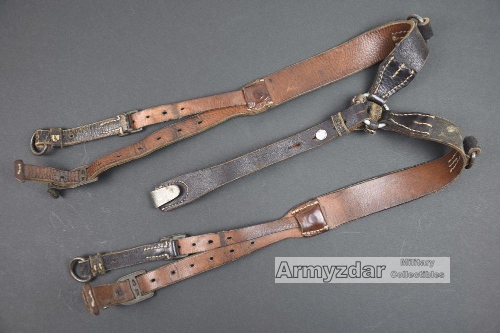 These are a goos used german Y-straps from typical mid/late war production. The leather is soft and flexible.