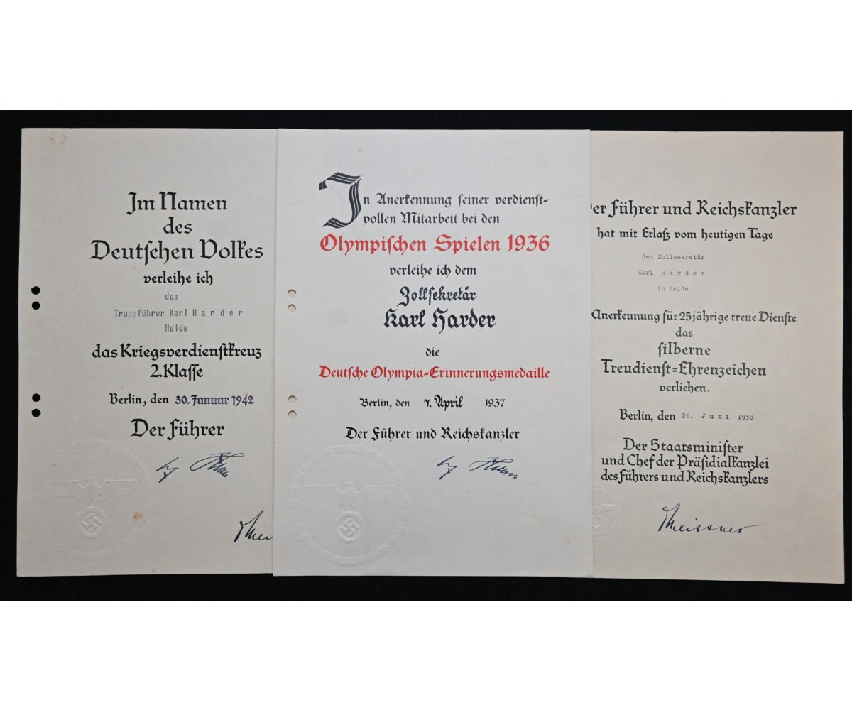 Very nice Olympischen Erinnerungsmedaille award document grouping in used, but very good condition.