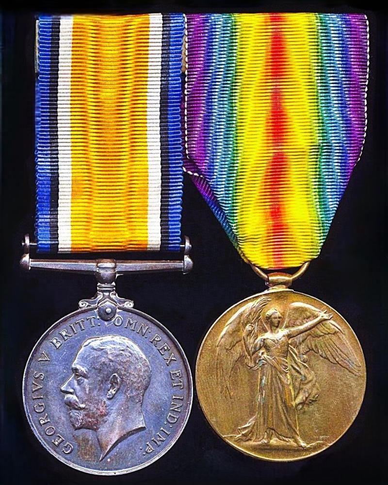 - British War Medal. Silver issue (2870 Pte. B. S. Mercer. Montgom. Yeo.)- Interallied Victory Medal (2870 Pte. B. S. Mercer. Montgom. Yeo.)Wounded-in-Action: reference 'The County Times' issue of 17 November 1917, from which we are quoting the below following casualty notice:Quote,SERGT BASIL MERCER, WELSHPOOLMrs Mercer, Bodfach, Welshpool, who is staying at Denbigh, has received notification that her son, Sergt Basil Mercer, has been wounded in Palestine. Sergt Mercer went out to Egypt with the Yeomanry, in which he enlisted over two years ago, when on the staff of the Land Valuation Office at Welshpool. His father, Lieut and Quartermaster W. Mercer, of the same regiment, went out to Egypt at the same time as his son, but has since been drafted to Salonica.Unquote.Medals Verification: Both medals confirmed as the recipients full medal entitlement for the Great War, per below referenced medal rolls- British War Medal: WO 329/1086. First as 2870 /1st Montgomeryshire Yeomanry then 355338 25/RWF- Interallied Victory Medal: WO 329/1086After their arrival in Egypt the Montgomery Yeomanry were dismounted, and amalgamated with the Welsh Horse Yeomanry, to become the 25th (Montgomeryshire and Welsh Horse Yeomanry) Battalion, Royal Welch Fusiliers. Under their new designation the 25th R.W.F. served as a constituent unit of 231st Brigade of the newly-formed 74th (Yeomanry) Division. In terms of actions, with the Egyptian Field Force in Palestine they were engaged at the 2nd Battle of Gaza 17-19 April 1917 and the Third battle of Gaza 27 October-7 November 1917, which latter battle included the Capture of Beersheba on 31 October 1917Considering the published cited newspaper article (17/11/17) it is almost certain that Sergeant Mercer was 'Wounded-in;Action' while fighting during the 3rd Battle of Gaza / Capture of BeershebaVictoria Cross Action: On 31 October 1917, Corporal John Collins D.C.M., of the 25th (Montgomeryshire and Welsh Horse Yeomanry) Battalion, Royal Welch Fusiliers. performed the below following conspicuous deeds of gallantry that earned for him the award of the Victoria Cross:Quote,On 31 October 1917, during the Battle of Beersheba at Wadi Saba, Beersheba, Palestine, when, after deployment, prior to an attack, his battalion was forced to lie out in the open under heavy shell and machine-gun fire which caused many casualties. Corporal Collins repeatedly went out under heavy fire and brought back many wounded to cover, thus saving many lives. In subsequent operations throughout the day, he was conspicuous in rallying and leading his command. He led the final assault with the utmost skill in spite of heavy fire at close range and uncut wire. He bayoneted 15 of the enemy and with a Lewis gun section, pressed on beyond the objective and covered the reorganization and consolidation most effectively although isolated and under fire from snipers and gunsUnquote.Basil Samuel Mercer, son of William Thomas Mercer (a Professional Soldier, ex 12th Royal Lancers, British Army, later Lieutenant awarded M.B.E. died Salonika, November 1918) and Mary Ann Mercer (nee Jones) was born in Cork, County Cork, Ireland, on 6 June 1896. By the time of the compilation of the National Census for England and Wales in 1911, Basil, described as a 'Schoolboy' is recorded living with his parents (father shown as R.S.M.) and several siblings at their residence located at 'The Armoury', Welshpool, Montgomeryshire, Wales. After his overseas service in the Great War in which he was wounded, Basil returned to his family in Welshpool, where on 1 December 1920, he married Lottie J. Pilot. Basil Samuel Mercer is recorded to have died in Montgomeryshire, Wales, on 8 October 1960The medals mounted as-worn by the recipient in the swing-style. The medals fitted with their original lean bright silk 'moire' ribands suspended from a white-metal mounting bar, this latter retaining its hinged pin & clasp fittingsA very scarce seen Great War casualty pair for Palestine to a Welsh Yeomanry Trooper who at one time served together with his father in the Montgomeryshire Yeomanry, and who later fought with the 25th Battalion Royal Welch FusiliersCondition: Toned GVF