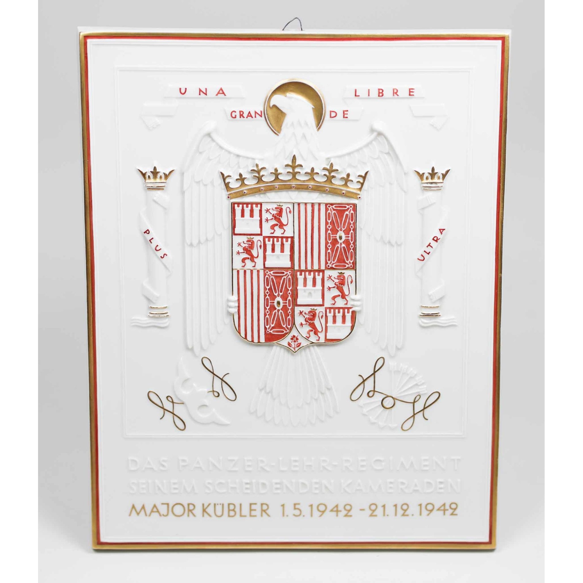 roße Porzellan Tafel Ritterkreuzträger „Major Kübler' Panzer-Lehr-Regiment 1942 KPM Porzellan
