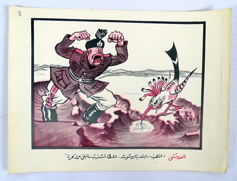 Small WWII Arabic Language Anti-Axis Cartoon Poster