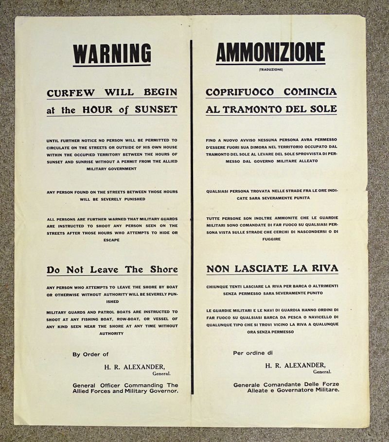 WWII Occupied Italy Curfew Poster