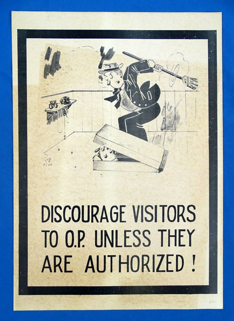 Small WWII Poster: 'Discourage Visitors to the O.P. Unless They Are Authorized'