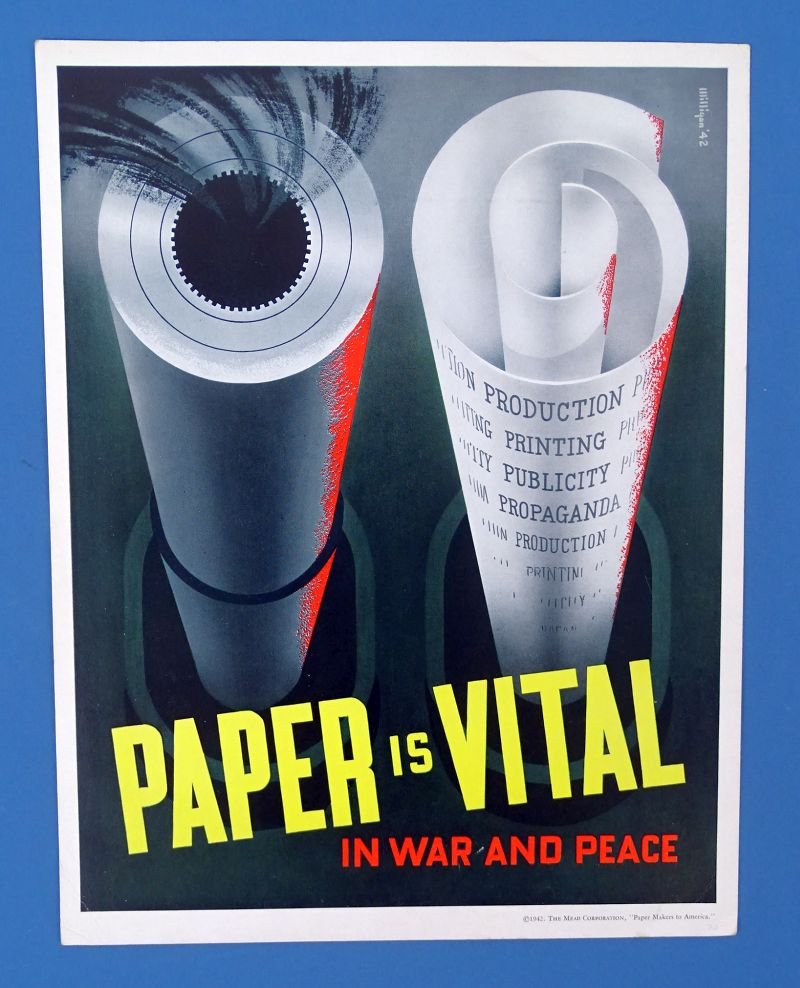 Small WWII Window Card Poster: 'Paper is Vital in War and Peace'
