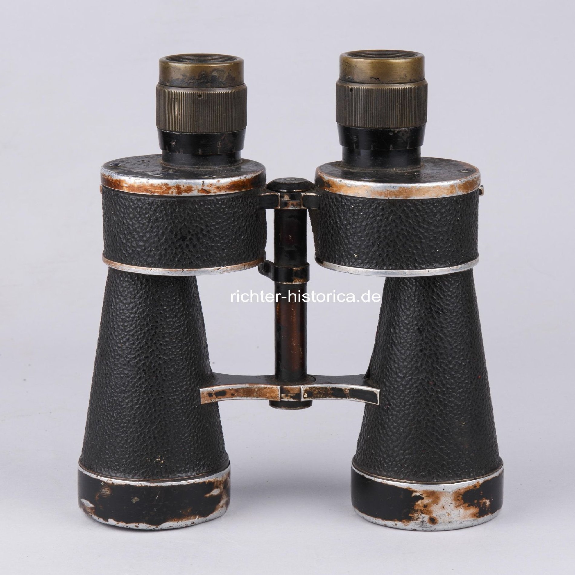 Dienstglas der Kriegsmarine, 7x50, Hersteller 'beh Nr.330193 KF' Nr. 'M 23590 N' der Hoheitsadler der Kriegsmarine wurde weggeschliffen. Der Riemen fehlt, eine Halterung vom Riemen abgebrochen, linke Durchsicht einwandfrei, rechts zu 50% milchig. Zustand 2-