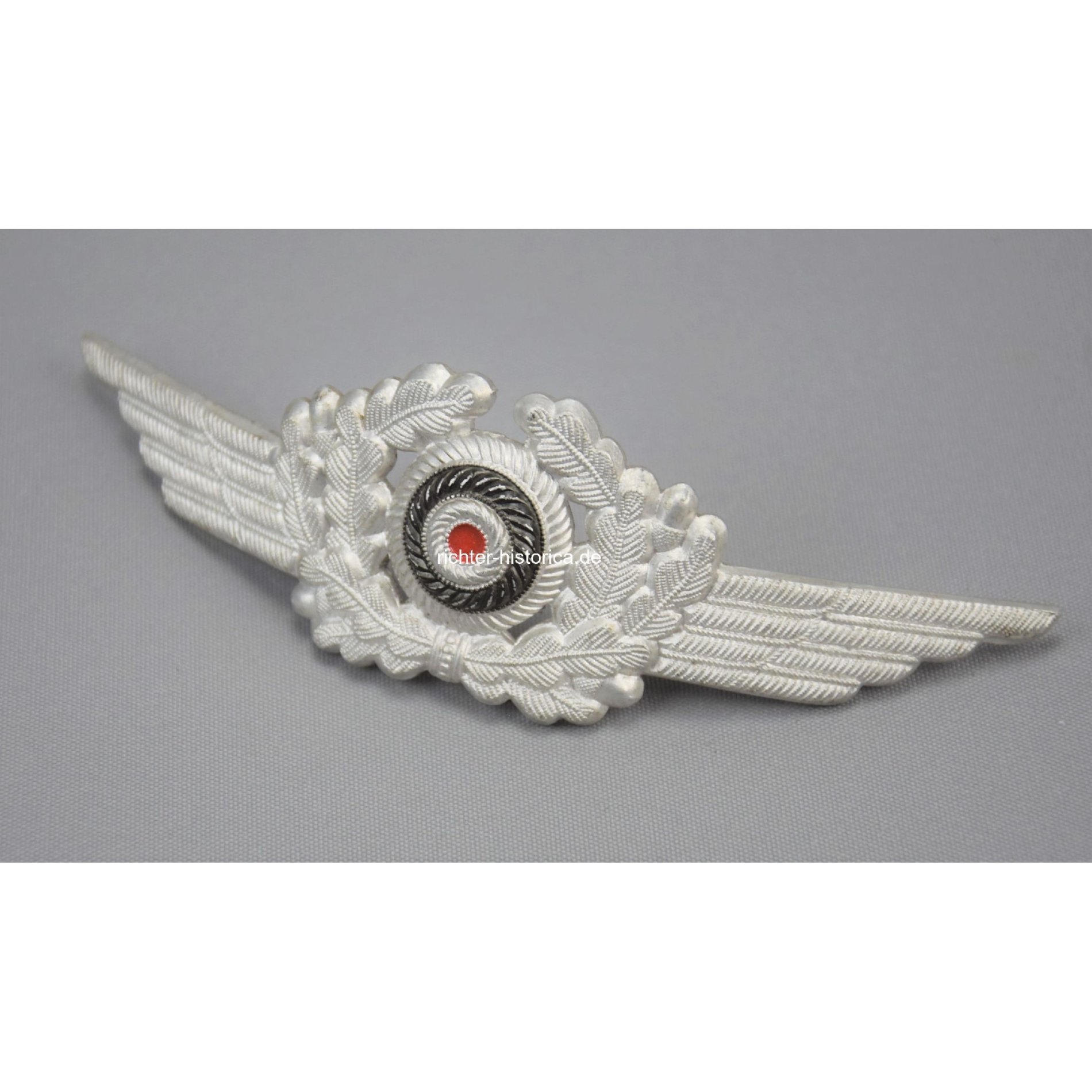 Getragene Schwinge mit Kokarde für die Schirmmütze, Aluminium Fertigung, rückseitig mit beiden Splinten.