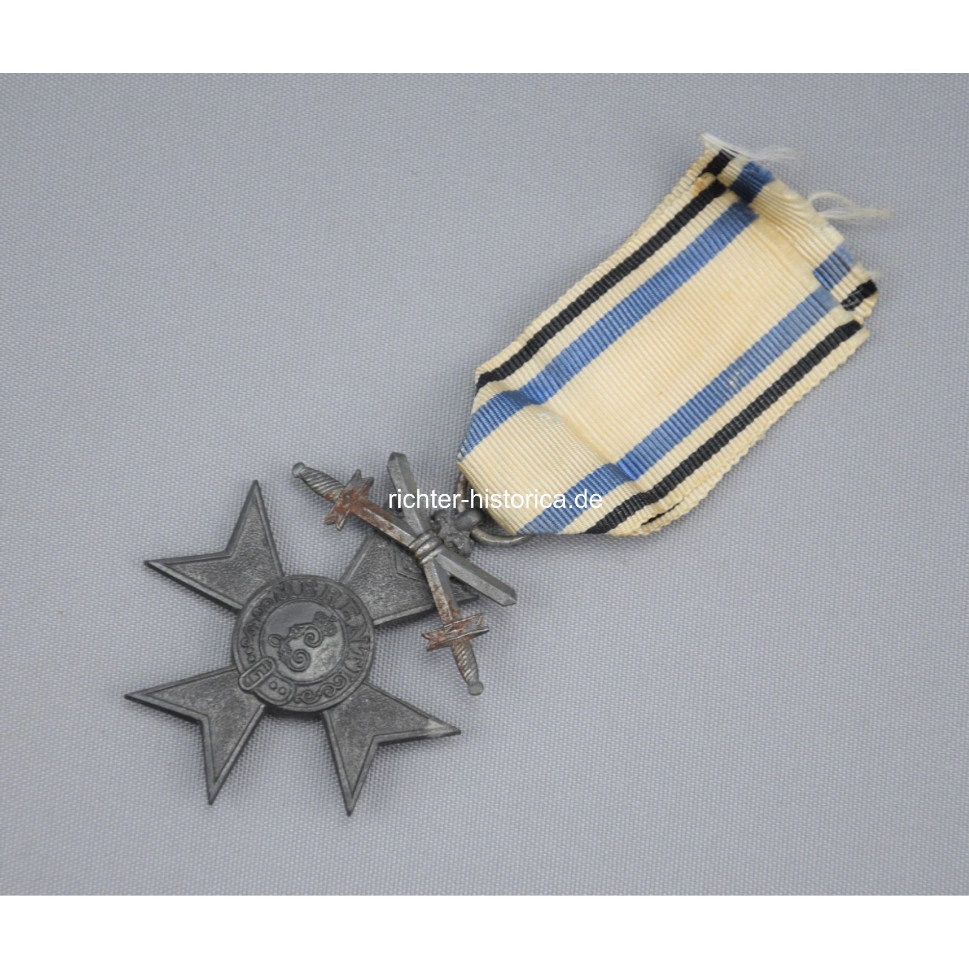 Feinzink Ausführung, die Schwerter magnetisch. Am Verleihungsband, getragen.