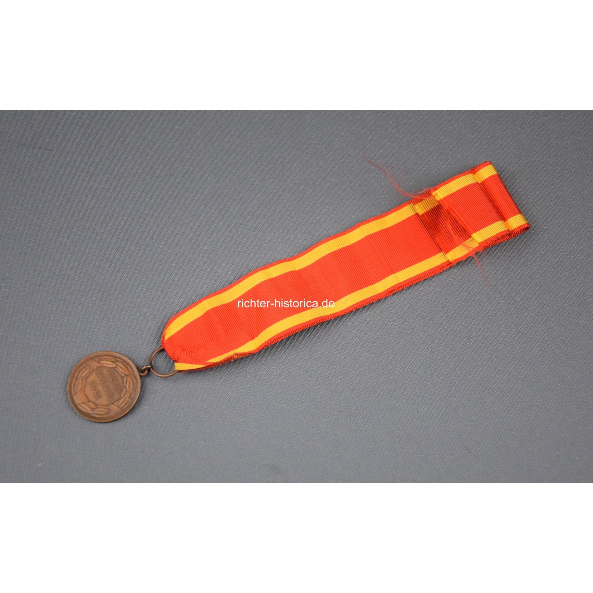 Bronze Medaille von 1941 aus Finnland. Vorne mit Aufschrift ' Urheudesta för Tapperhet' Am langen Verleihungsband. Zustand 2.